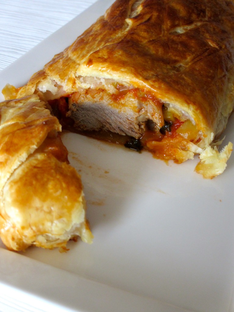 filet mignon, filet mignon en croûte, légumes, ratatouille, pâte feuilletée, oignon persil, courgette, tomate, poivron, brunoise