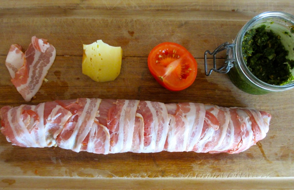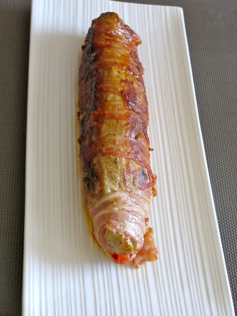 - Refermer le filet mignon et l’enrouler avec les bandes de lard en les serrant vivement.