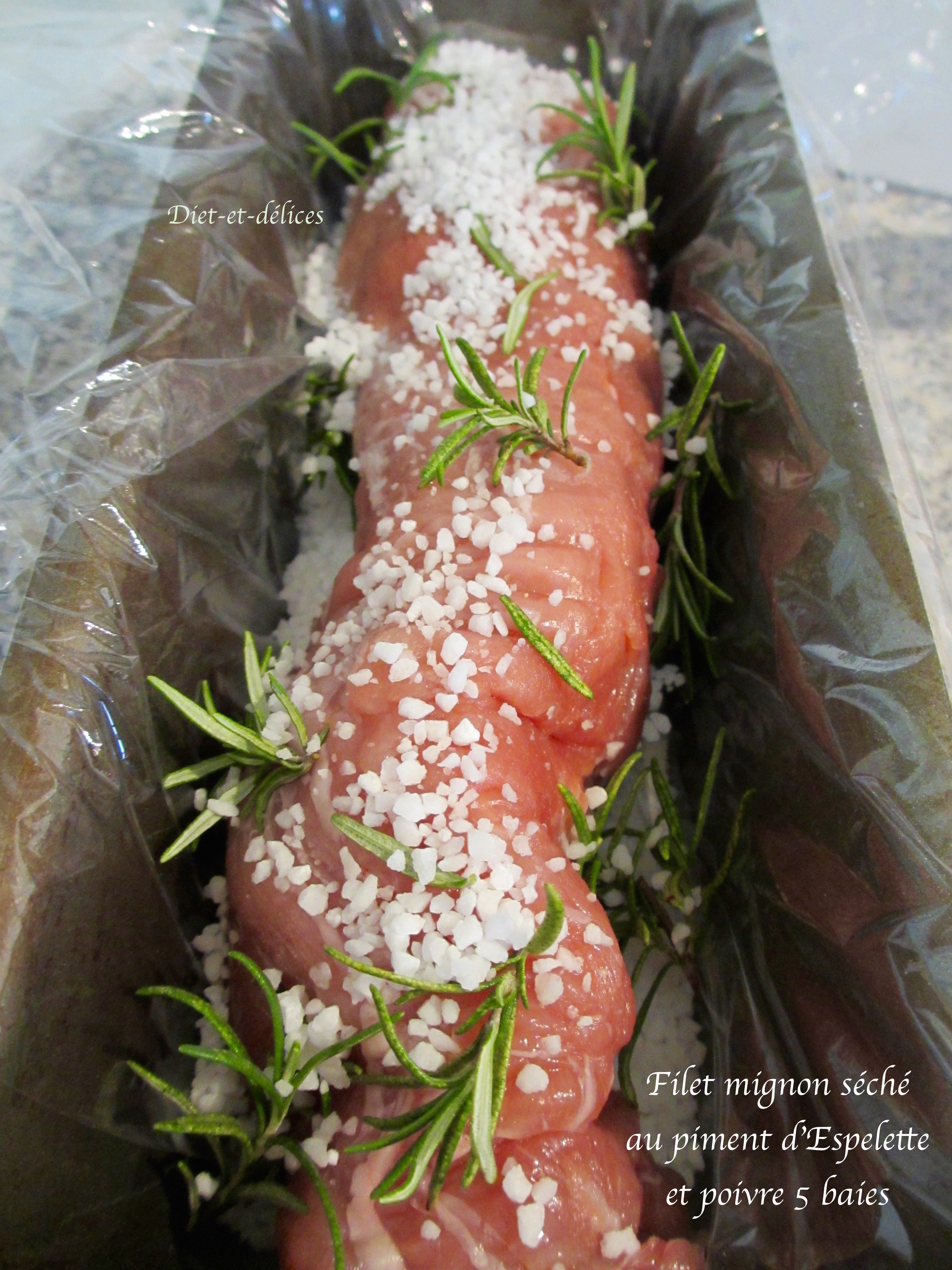- Ajouter quelques brins de romarin puis couvrir le filet mignon de sel.