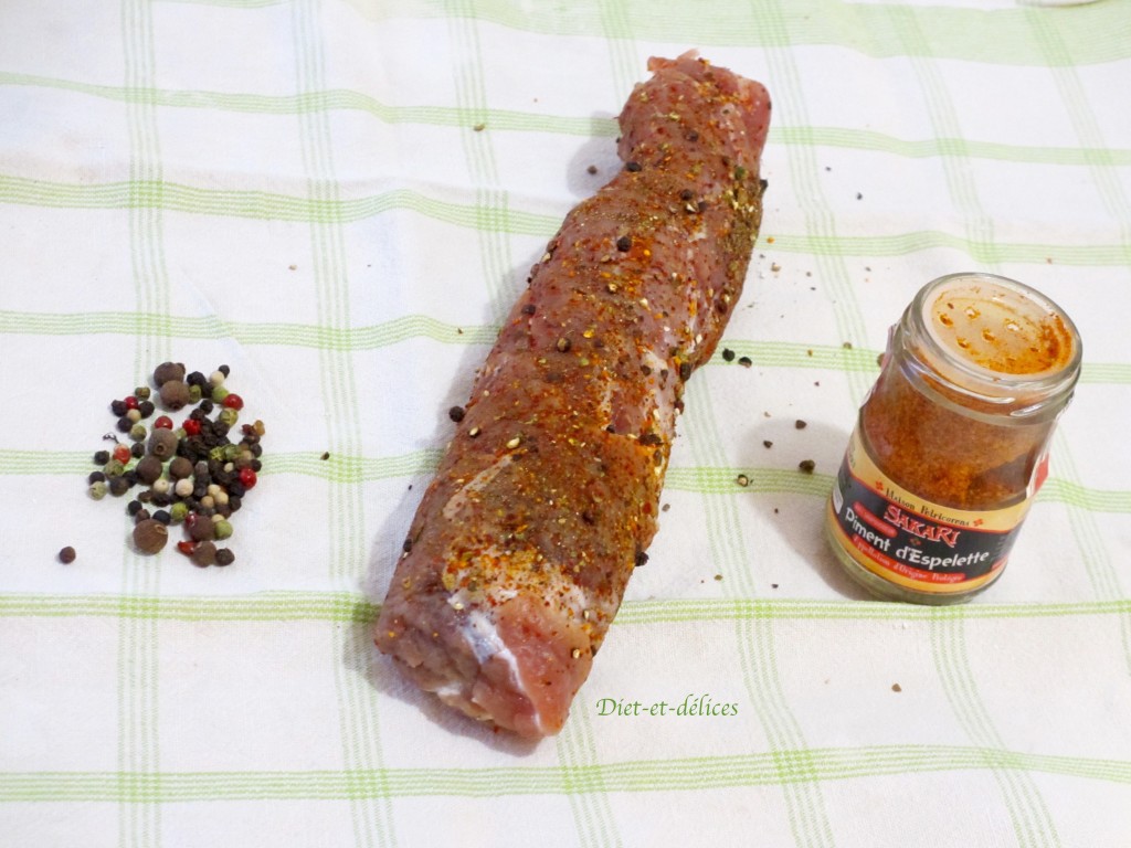 - Frotter le filet mignon avec du piment d’Espelette et du poivre.