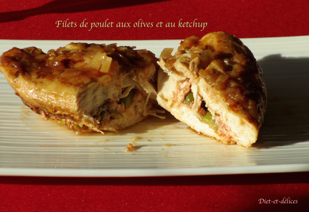 poulet, poulet farci, filet de poulet, olives, ketchup, échalotes, volaille, poulet aux olives