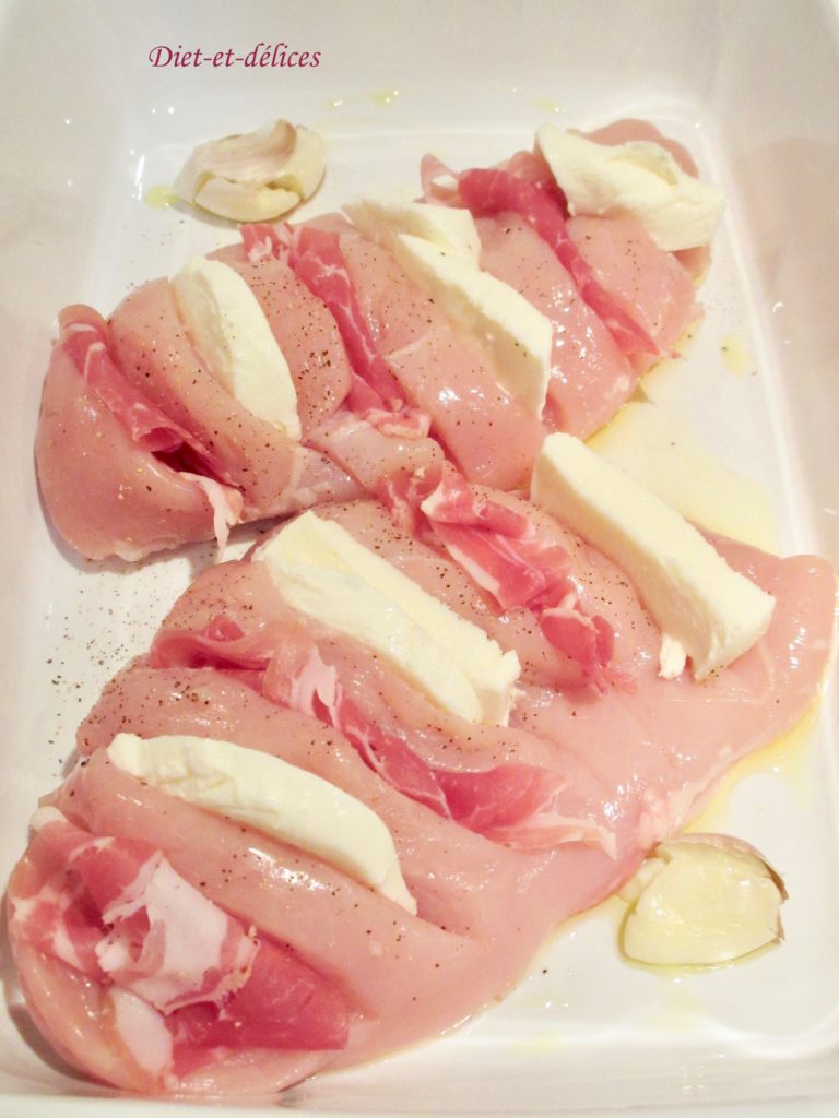poulet, filet de poulet, pancetta, mozzarella, volaille, viande blanche