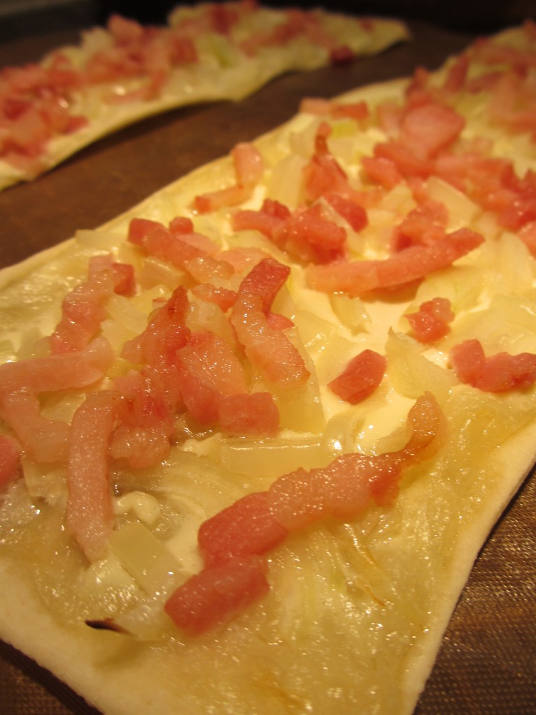 flammenkuche, flammenküche, tarte flambée, flamme-küche, flamms, Flammkuchen, pizza, oignons, lardons, lardons oignons, pizza aux oignons