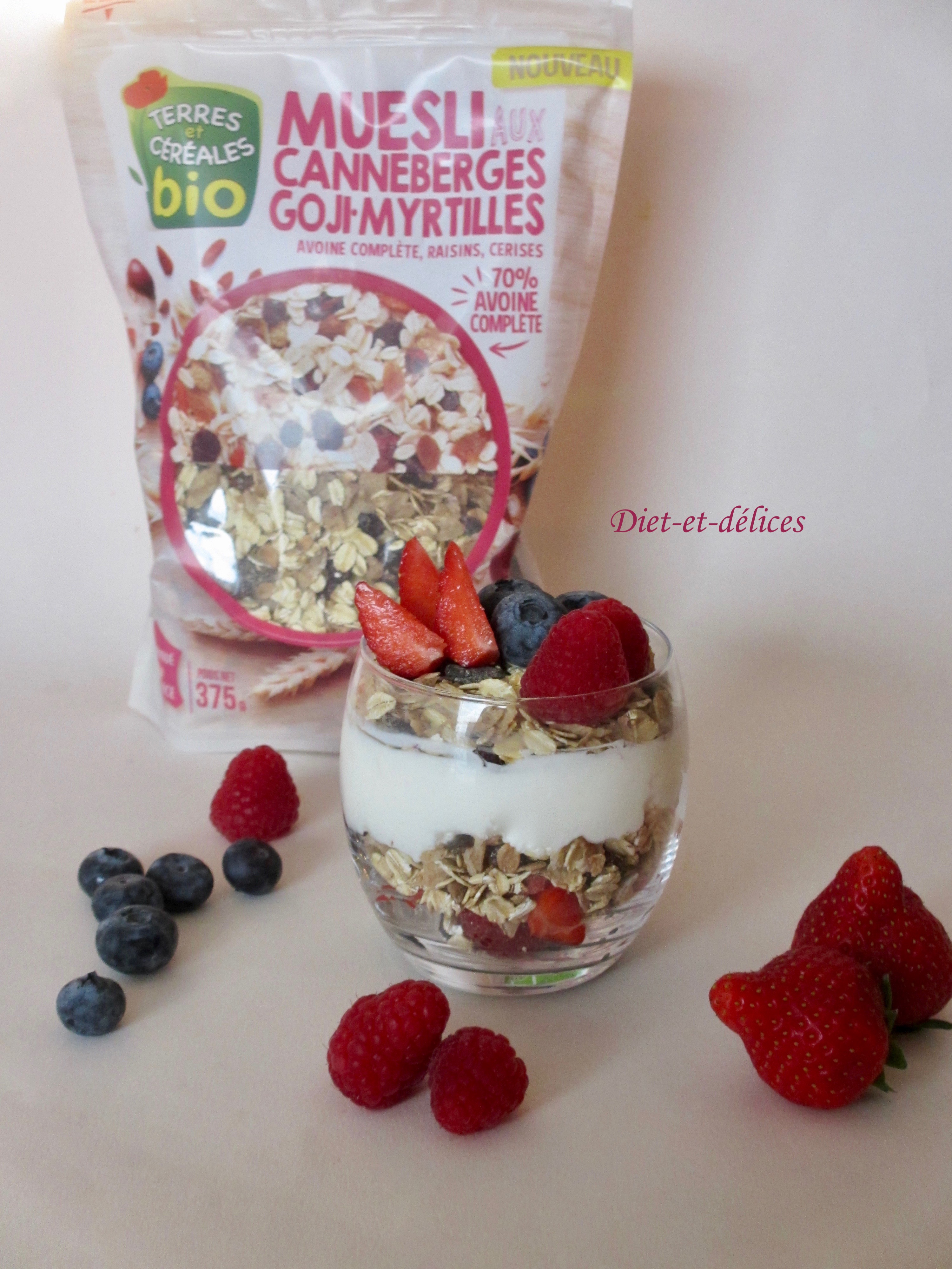 – 40 g de muesli aux canneberges-goji-myrtilles (Terres et céréales)