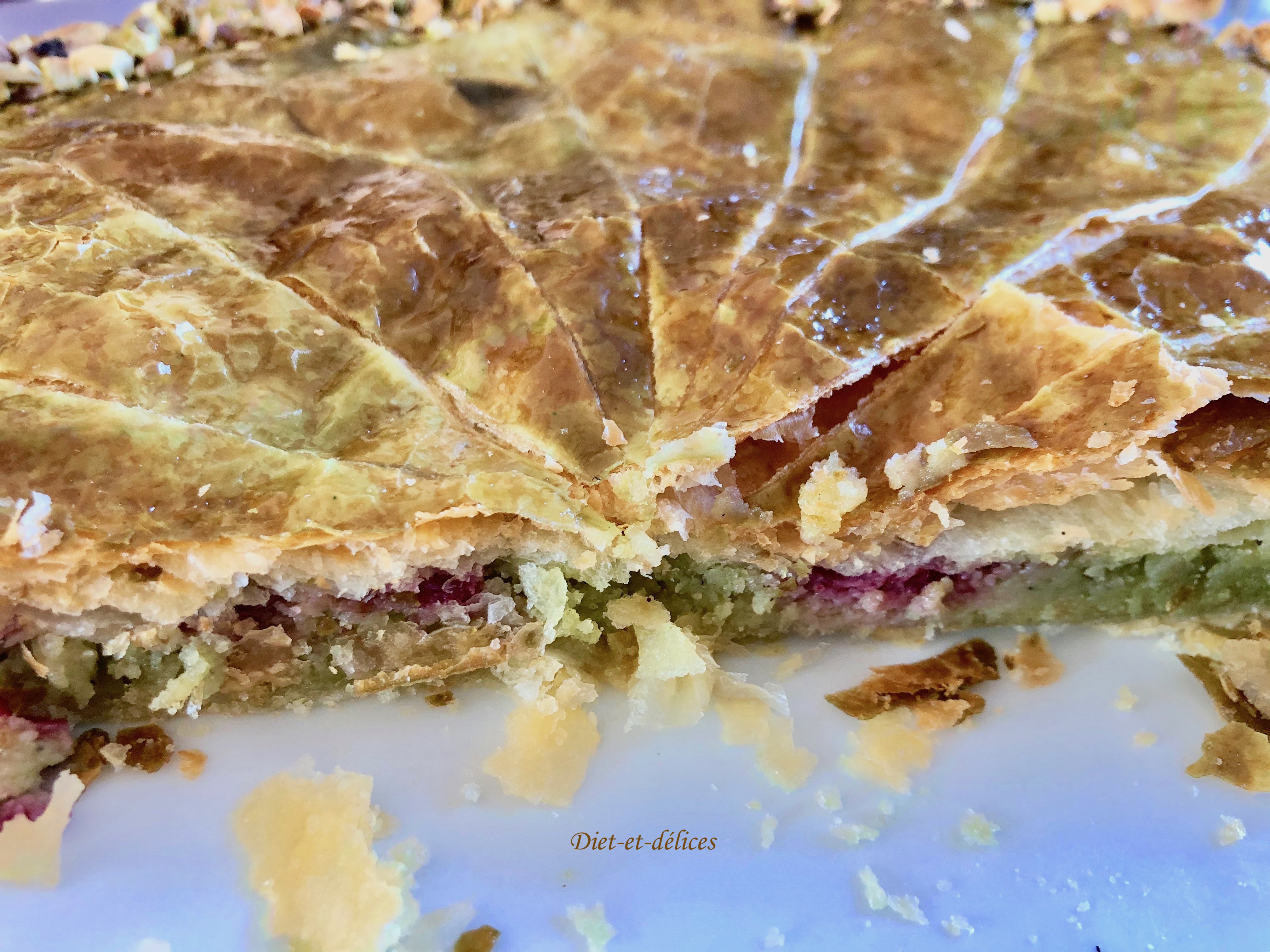 galette, galette des rois, pistache, pâte à pistache, framboises, épiphanie