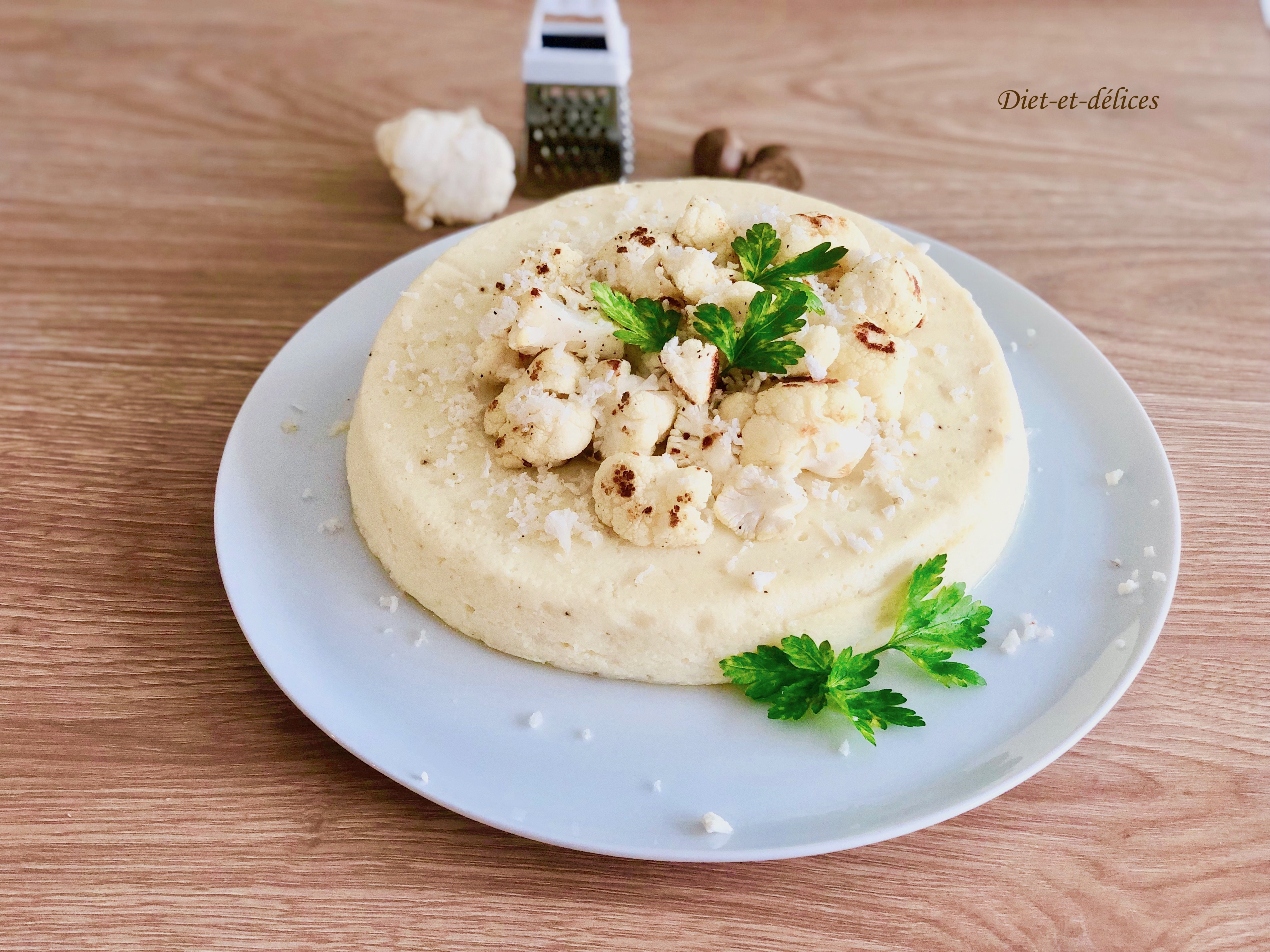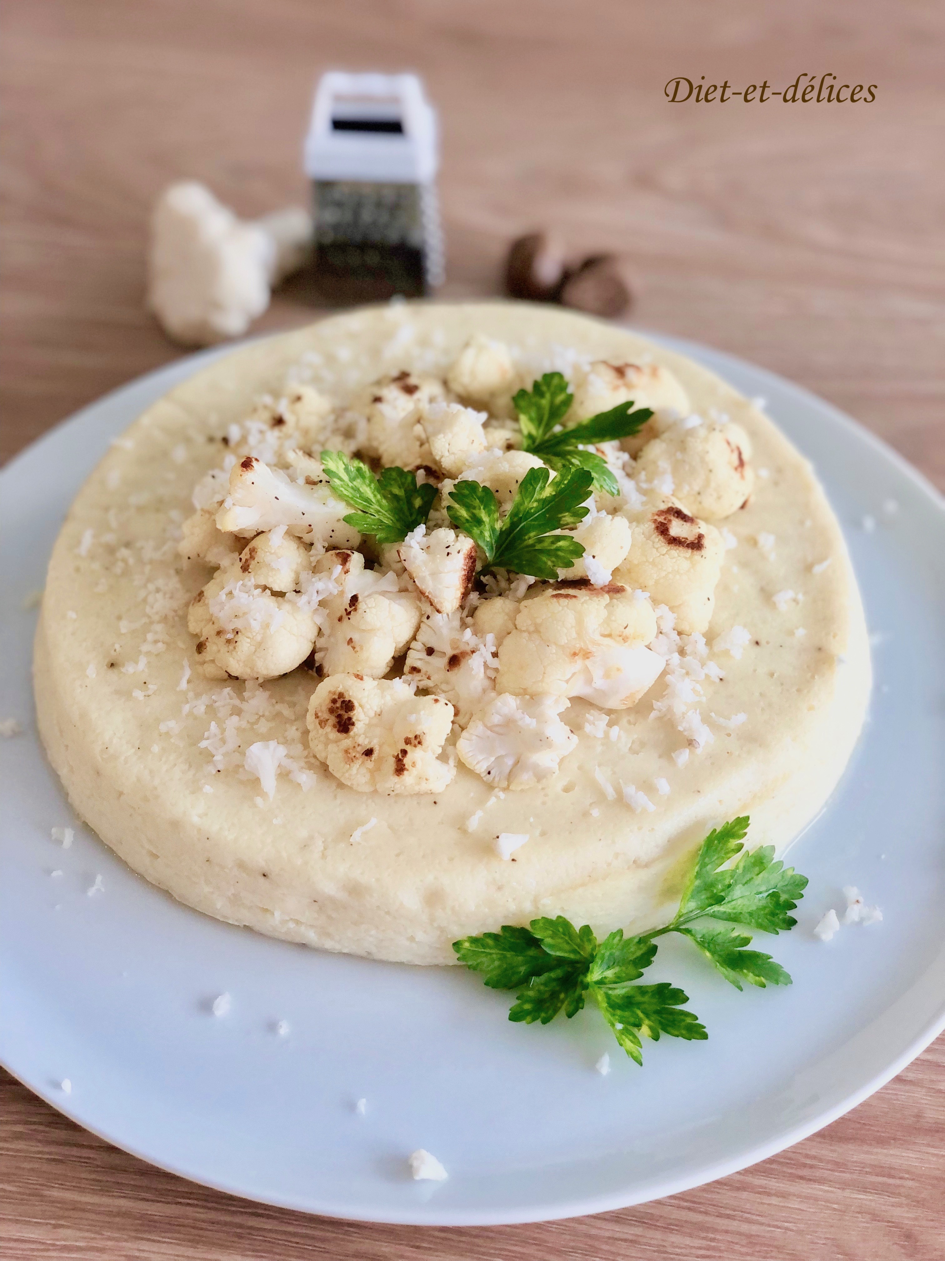 - Démouler la terrine puis la recouvrir du chou fleur rôti. Râper finement sur le gâteau les 50 g de chou fleur cru restant.