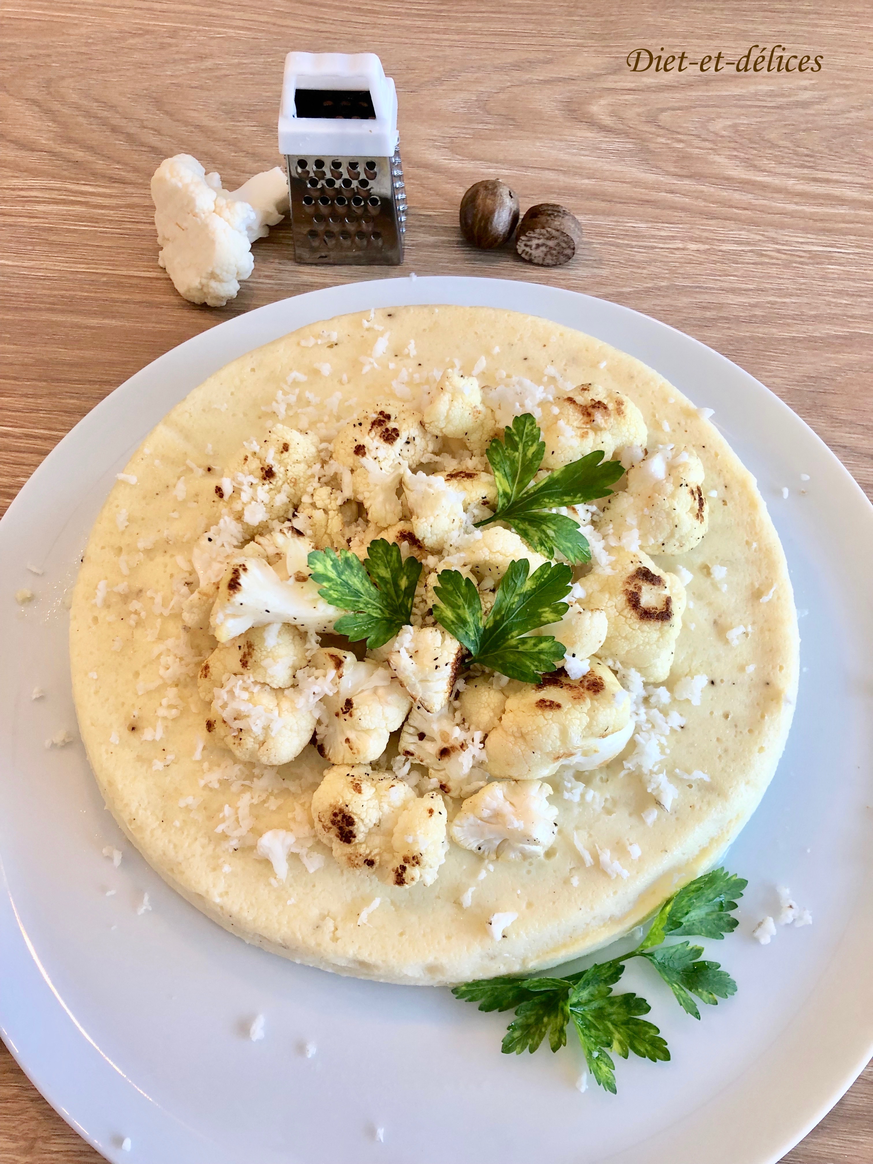 - Incorporer la purée de chou-fleur puis homogénéiser la préparation. Saler, poivrer puis ajouter la noix de muscade râpée. Mélanger et porter à petite ébullition puis ajouter, hors du feu, les oeufs.