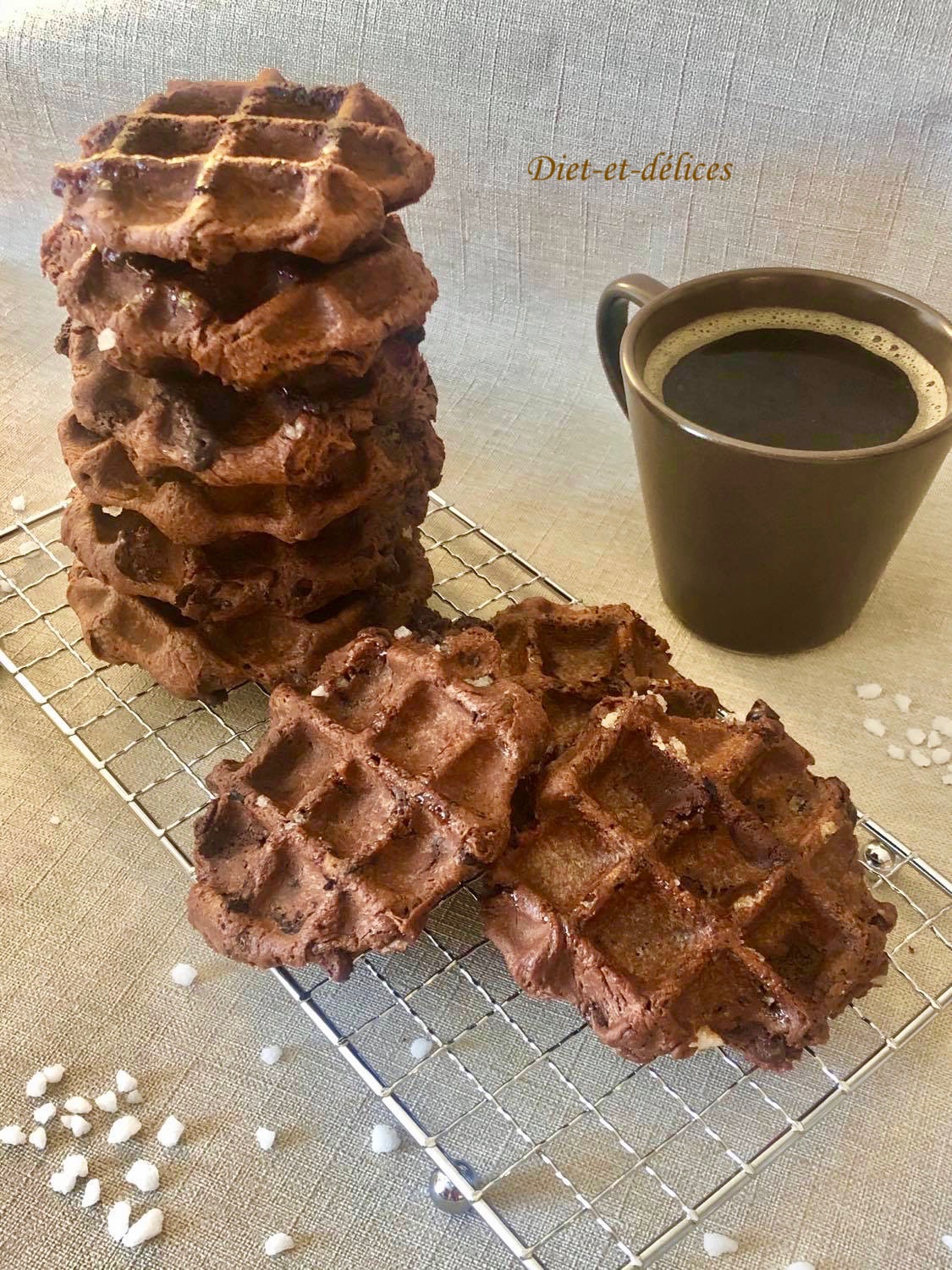 gaufres liégeoises, dessert, cuisine belge, végétarien, levure de boulanger, gaufres liégeoises au cacao , pépites de chocolat