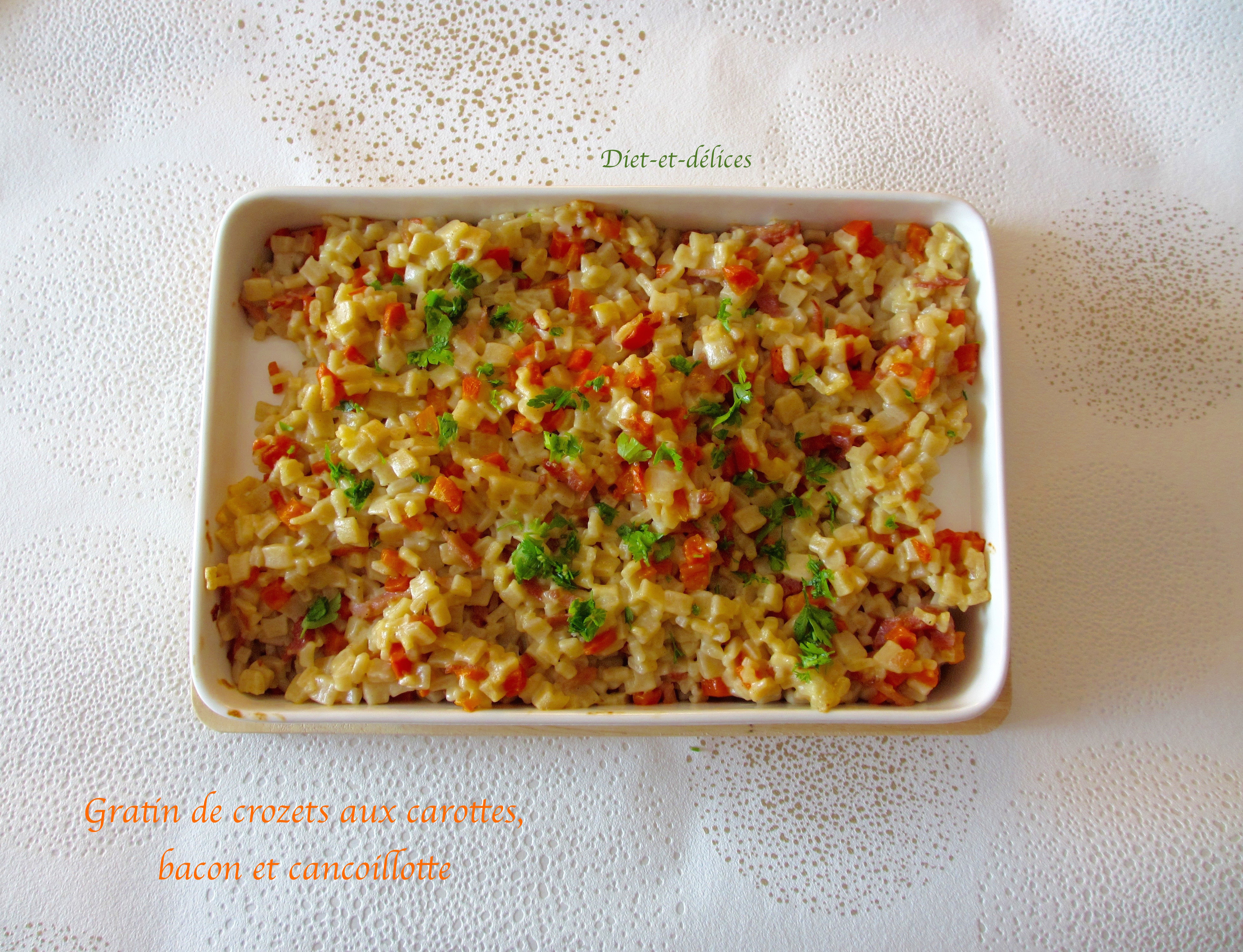 gratin, crozets, gratin de crozets, carottes, cancoillotte, cancoillotte à l’ail, bacon, diététique, plat complet
