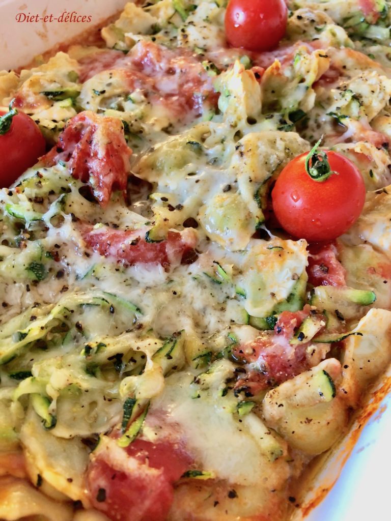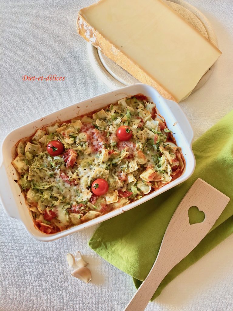 gratin, ravioles, courgette, gratin de ravioles, beaufort, tomate