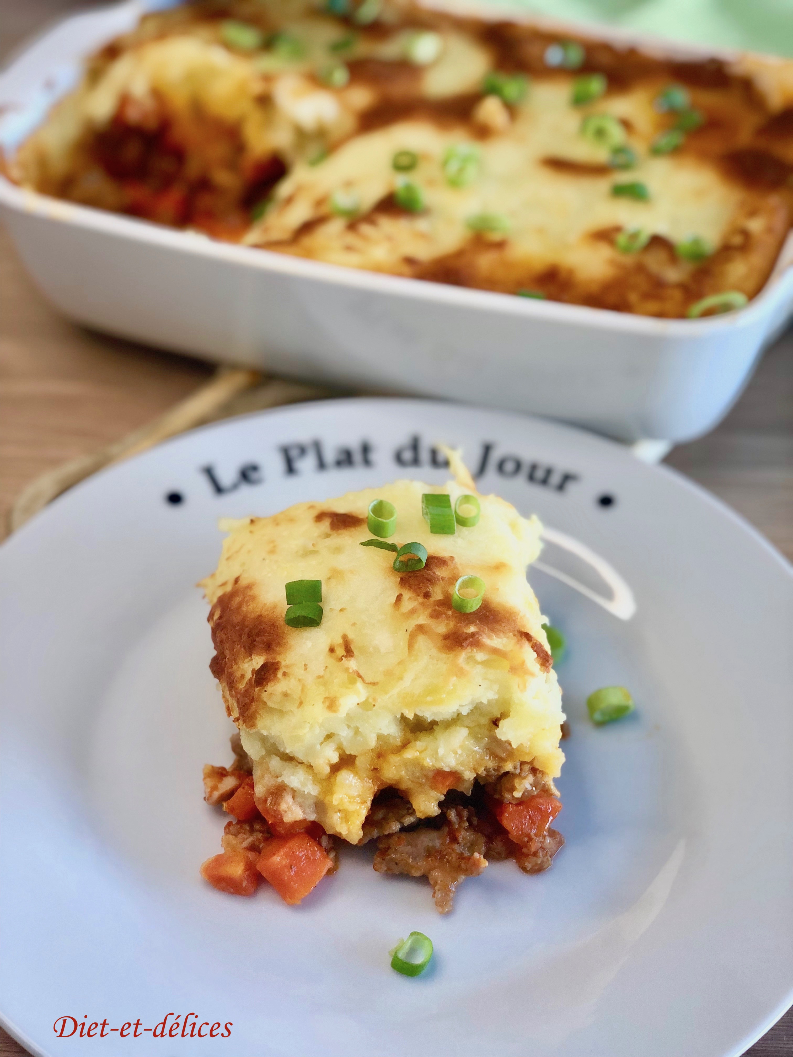 plat complet, hachis parmentier, pommes de terre, viande hachée, porc haché, poivron, carottes, purée, hachis