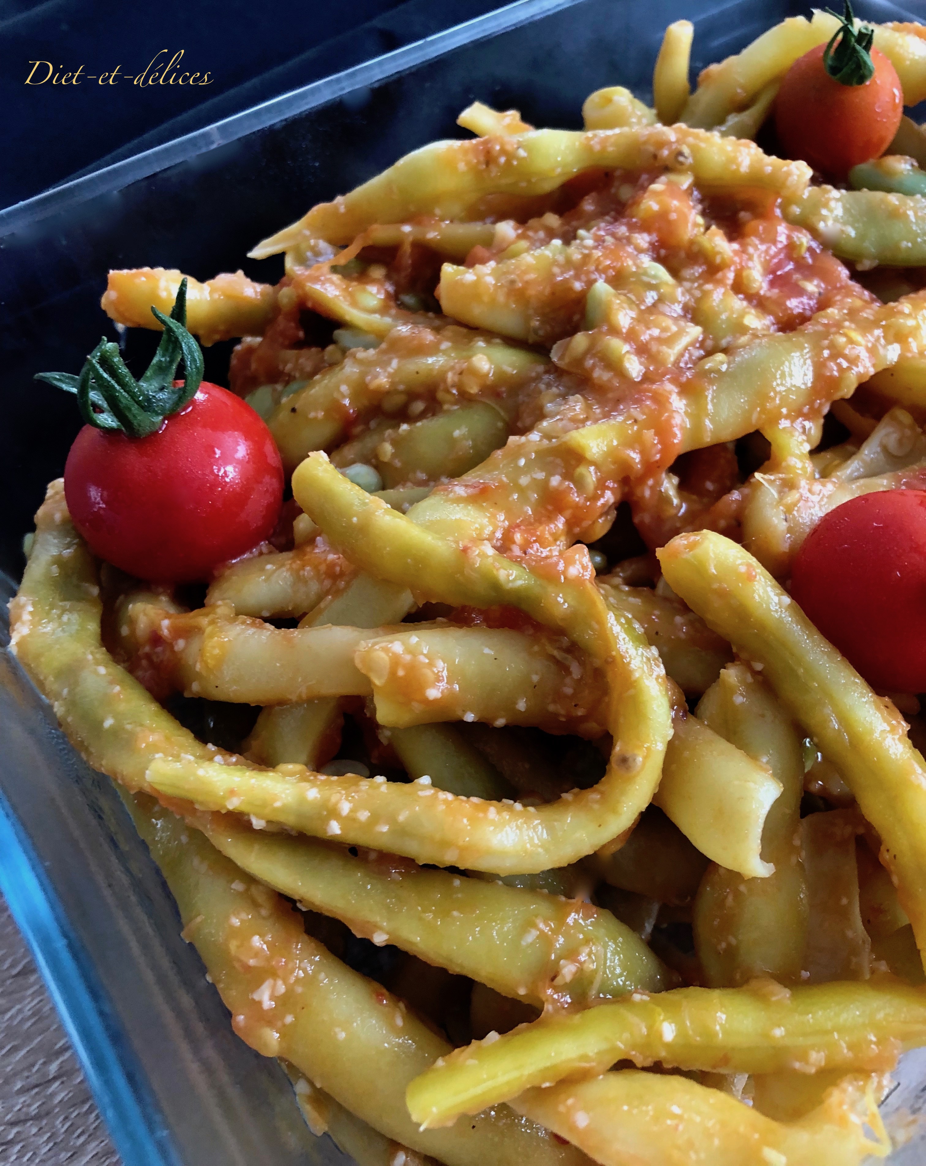 haricots beurre, haricot jaune, tomate, poêlée de légumes, légumes d’été, ail semoule