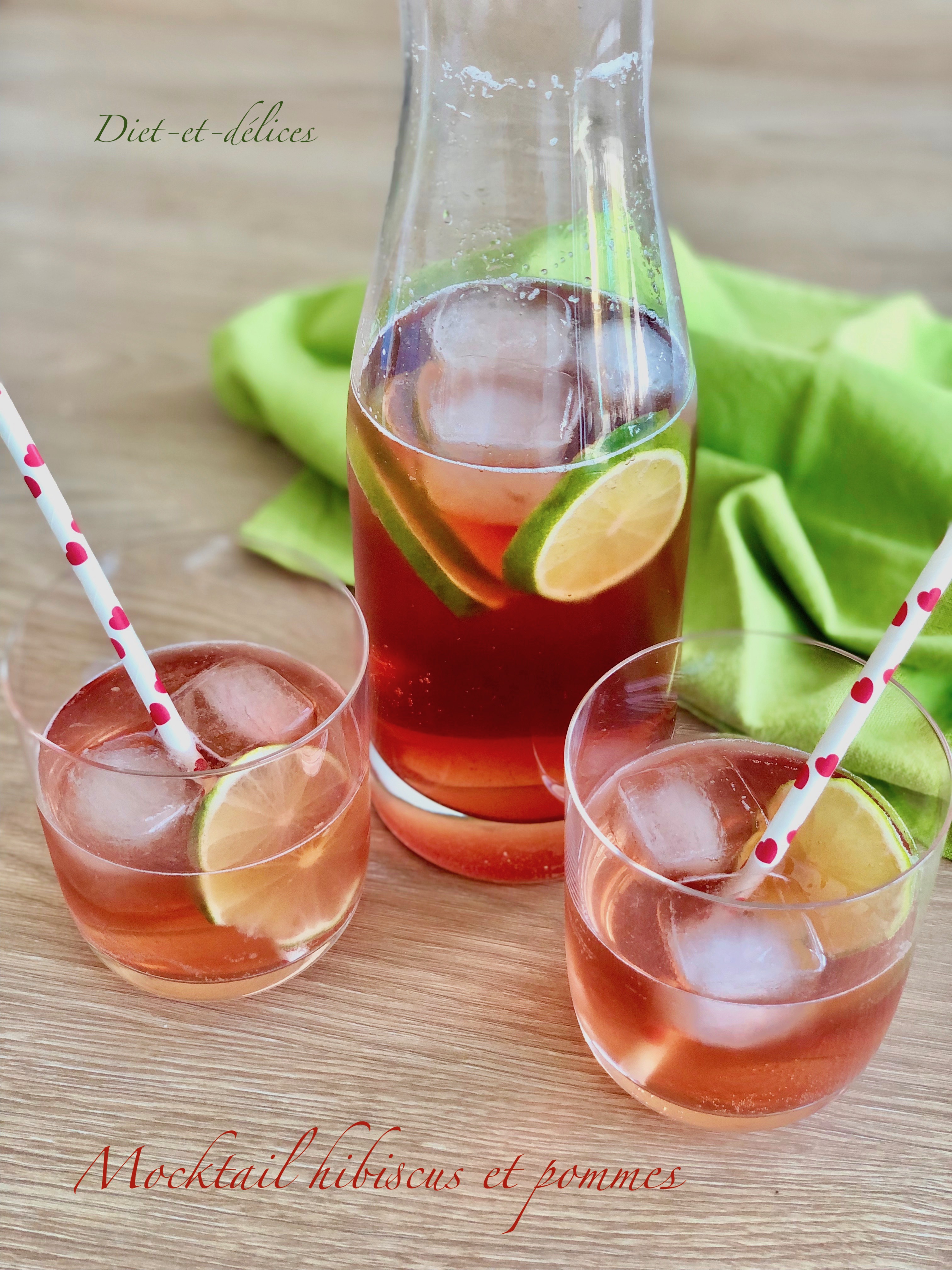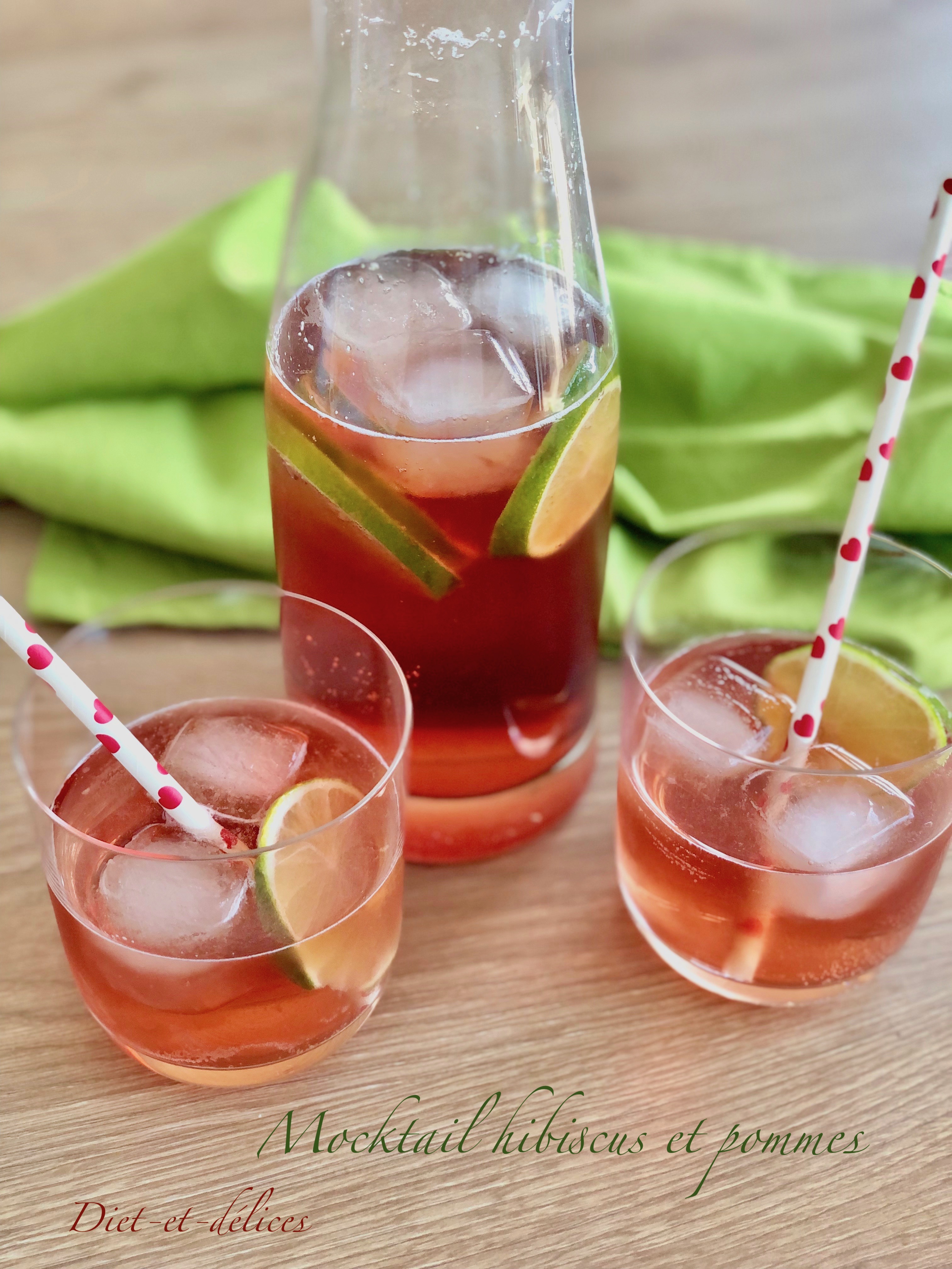 mocktail, cocktail, sirop d’hibiscus jus de pommes, boisson, limonade