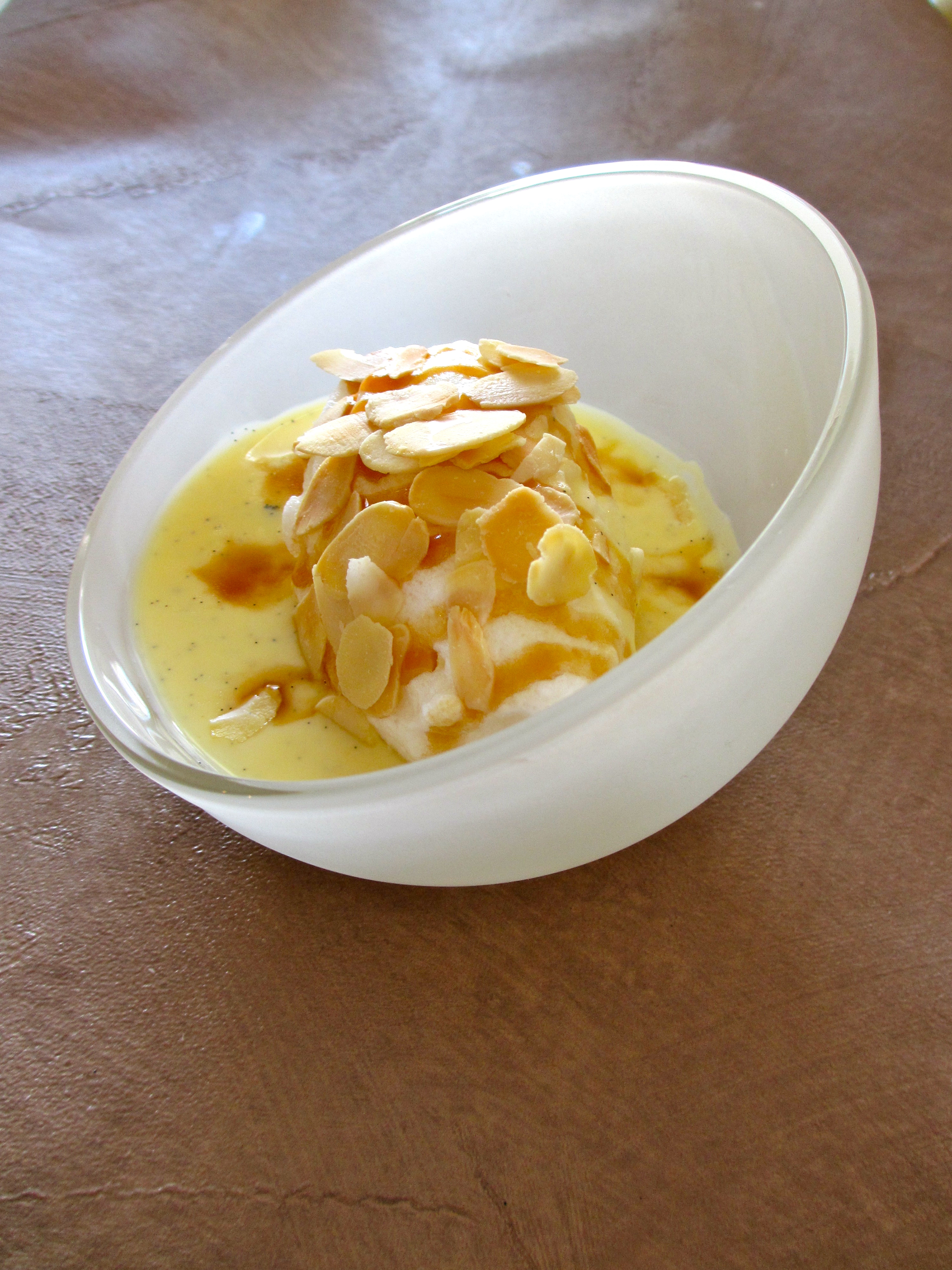 îles flottantes, crème anglaise, caramel au beurre salé, amandes effilées, dessert, laitageoeuf, blanc d’oeuf, jaune d’oeuf, oeufs à la neige, vanille, gourmandise