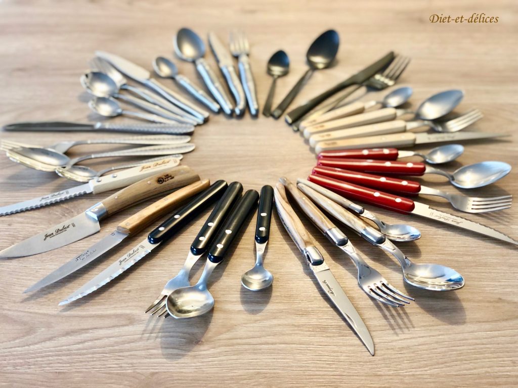- – couverts et couteaux Laguiole : coutellerie, couverts de table, accessoires de cuisine et cadeaux. Les matériaux les plus nobles tels que le bois (olivier, genévrier, wengé …), la corne véritable et l’acrylique sont utilisés. Un large choix de coloris et de décors, afin de répondre à l’évolution permanente des tendances à travers le monde vient élargir la gamme. La fabrication est 100% française.