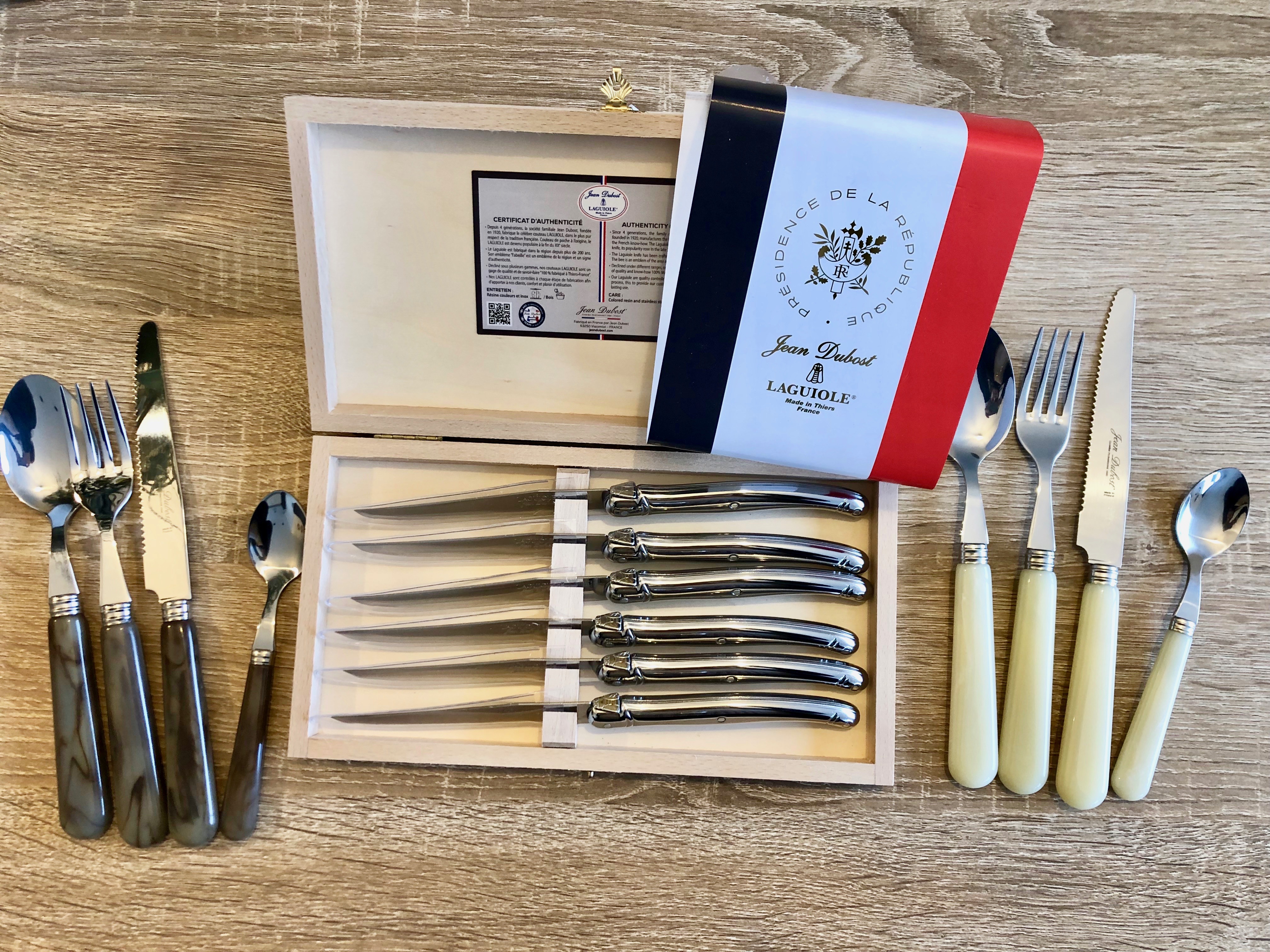Une nouvelle gamme Elysée x Jean Dubost Laguiole est disponible. Toute la gamme est gravées RF « République Française » et ÉLYSÉE. Parmi cette gamme vous pouvez notamment retrouver :
