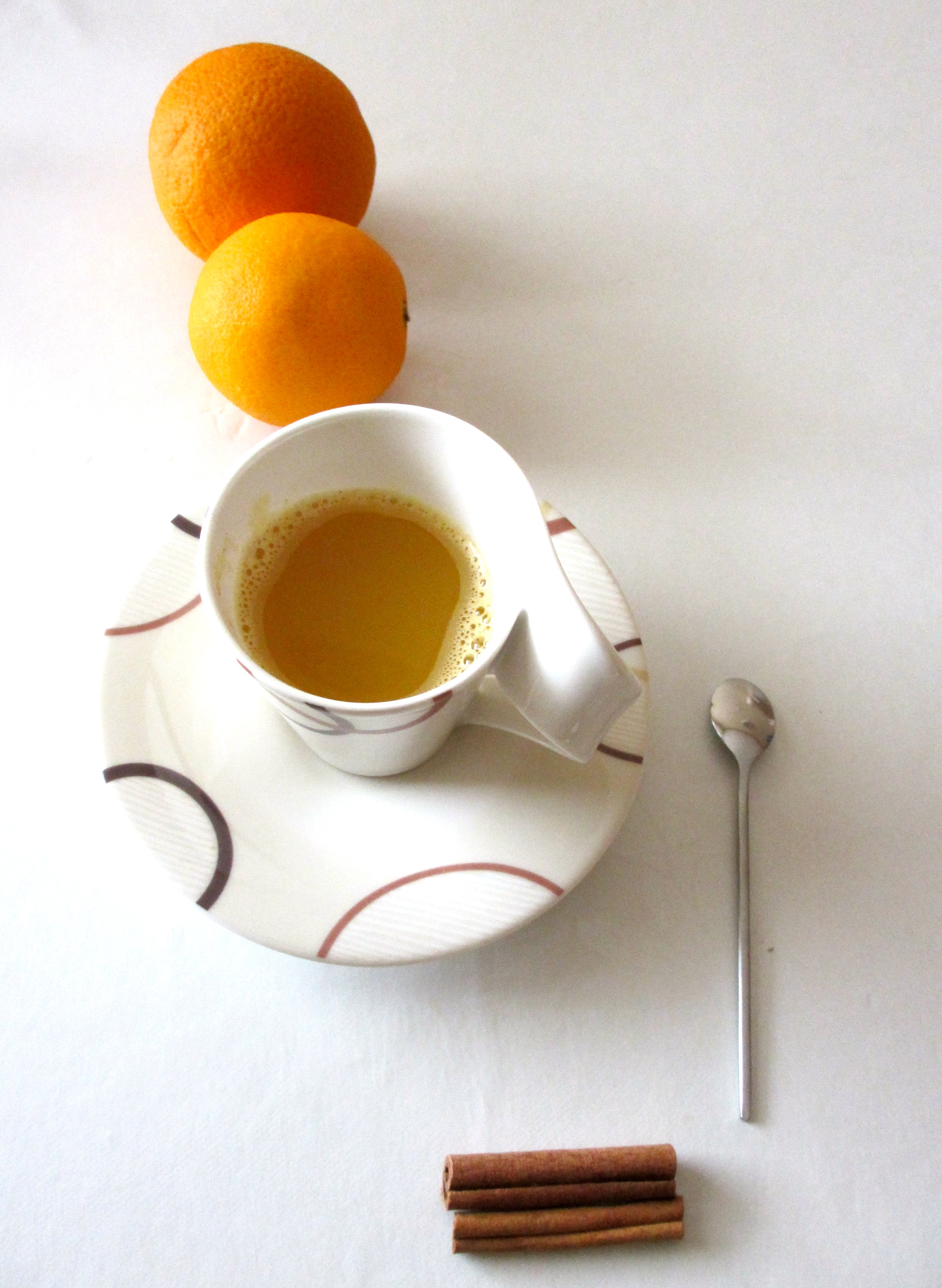 - Mélanger dans une casserole le jus d’orange, l’eau et les épices.