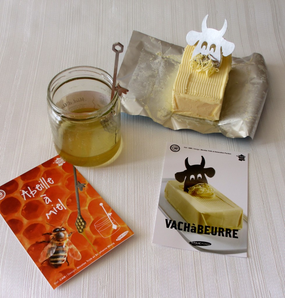 Au niveau du domaine culinaire, vous ne pourrez pas passer à côté de la VACHABEURRE : « La Vachàbeurre fait tout le contraire des grandes. Alors que la plupart des vaches mangent de l’herbe pour la transformer en lait puis en beurre, cette vache en inox est écologique puisqu’elle mange le beurre et le transforme en herbe ! Trempez son museau dans la motte de beurre froid. Vos invités vont l’adorer pour un tartinage facile après un brin de causette! »