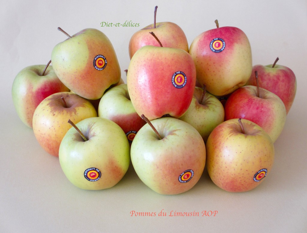 Seule pomme française bénéficiant de l’AOP (Appellation d’Origine Protégée) depuis 2005, cette reconnaissance officielle garantie la qualité de la pomme du Limousin AOP qui respectant un cahier des charges exigeant. Sa production représente 6% de la production française, soit 100 000 tonnes récoltées chaque année en Limousin. Cette pomme golden est la variété la plus consommée en France avec 28% des achats en 2010. Cette variété est à la fois croquante, juteuse et un subtil équilibre entre le sucre et l’acidité. Ses qualités organoleptiques et sa bonne conservation sont liées à son implantation en altitude sur les hauts plateaux du Limousin ( de 300 à 500m) et de la géologie avec son socle cristallin.