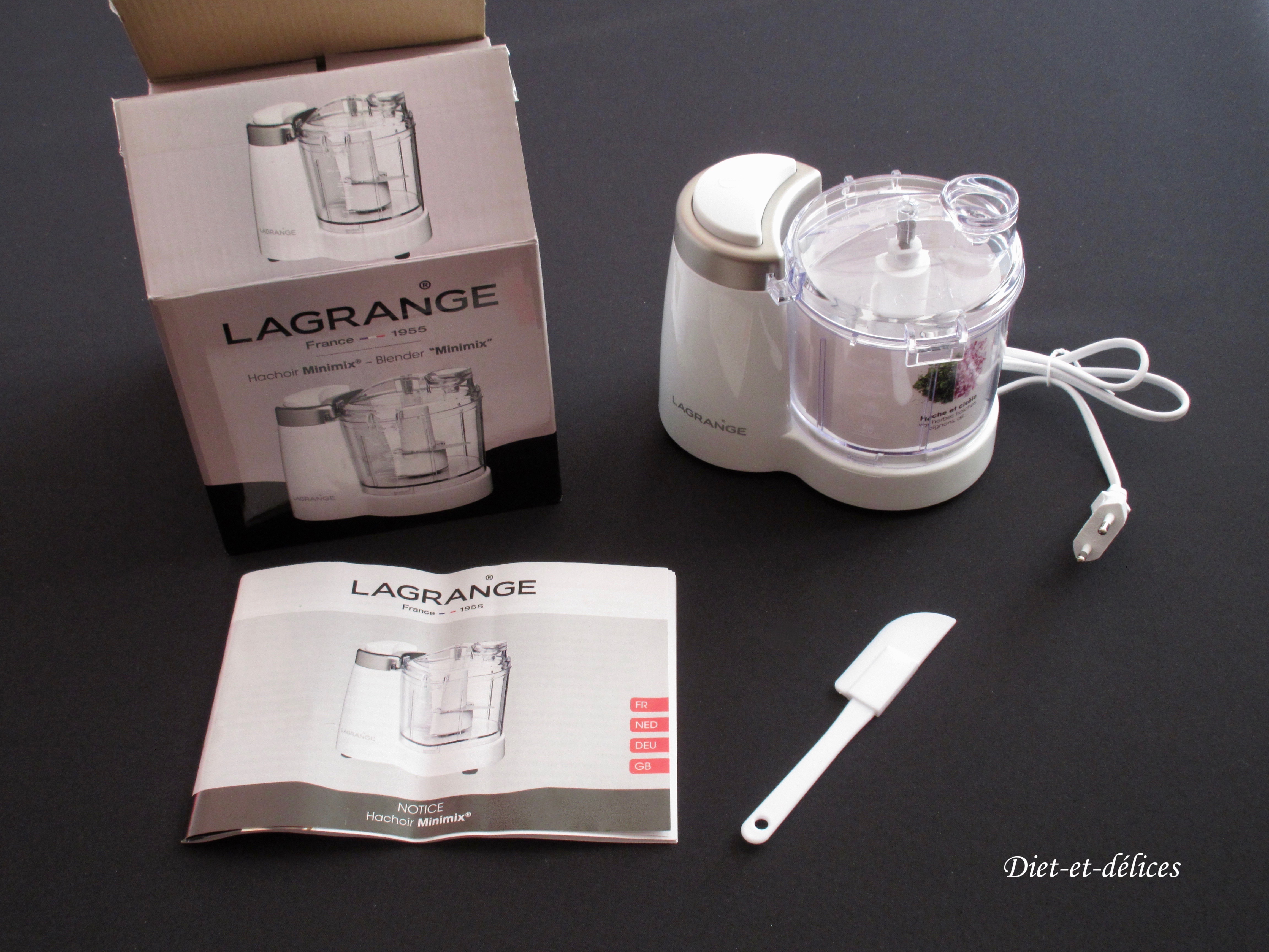 Lagrange vous propose notamment un mini hachoir minimixeur. Il vous permet de hacher la viande, les oignons, les noix, l’ail, les herbes… et de réaliser diverses sauces (mayonnaise, pesto, houmous…). Compact et facile d’utilisation, il dispose d’un seul bouton pression. Sa capacité de 350 ml permet de s’adapter au mieux à vos besoins. Sa goulotte à huile permet d’agrémenter les sauces sans avoir à ouvrir l’appareil. Les différents éléments sont amovibles, ce qui permet un nettoyage facile. De plus, une petite maryse est incluse pour racler le fond et les bords du récipient.
