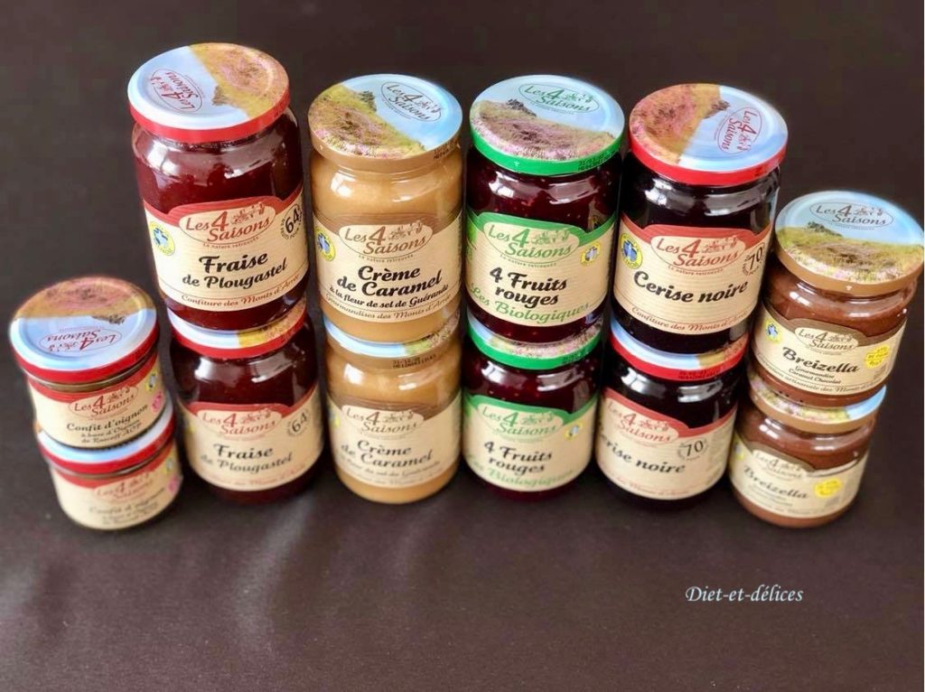 Située au cœur de la Bretagne, l’entreprise Les 4 saisons, propose depuis 1988 des confitures artisanales. L’une des clés du succès des 4 Saisons réside dans la sélection exigeante des fruits et le soin qui leur est apporté. Le sucre cristal est depuis toujours utilisé, à raison de 40% de sucre pour au minimum 60% de fruit, dès l’élaboration de la confiture, garantissant à celle-ci toute l’authenticité de son arôme. Les fruits sont portés à la cuisson dans des chaudrons en cuivre ouverts sous une chaleur à flamme. Une vingtaine de parfums de confitures sont proposés, dont le taux de fruits peut atteindre 70% telle la confiture de figues violette du Var. Parmi les parfums, on retrouve également cassis, clémentine corse, fraise, 4 fruits rouges, framboise, cerise griotte, myrtille, mûre, rhubarbe rouge…