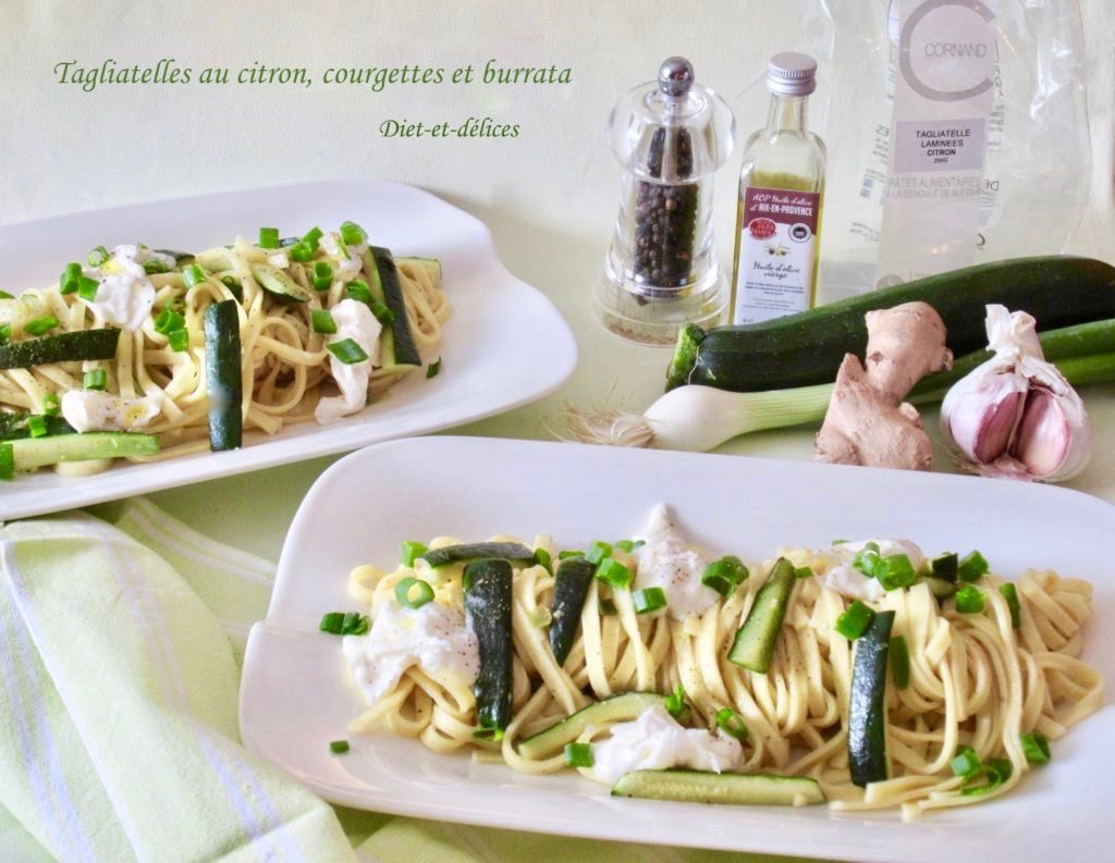 végétarien, linguine, pâtes, courgettes, linguine au citron, cébette, burrata