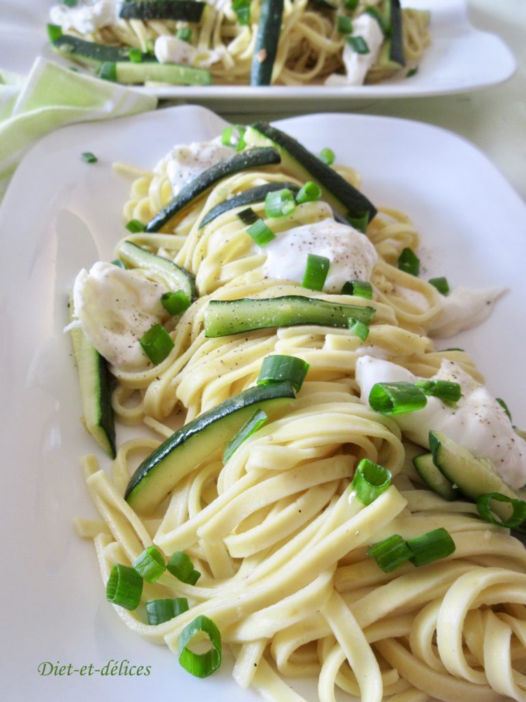 linguine, courgettes, burrata, pâtes, cébette, pâtes aux courgettes