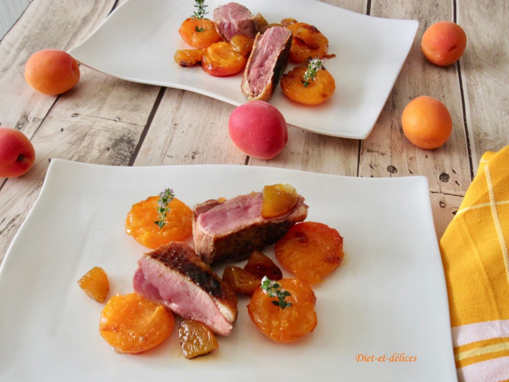Une recette sucrée- salée avec des abricots, sous deux formes différentes, pour mettre en valeur à merveille le goût du magret de canard et le sirop de thym qui apporte le peps nécessaire à ce plat.