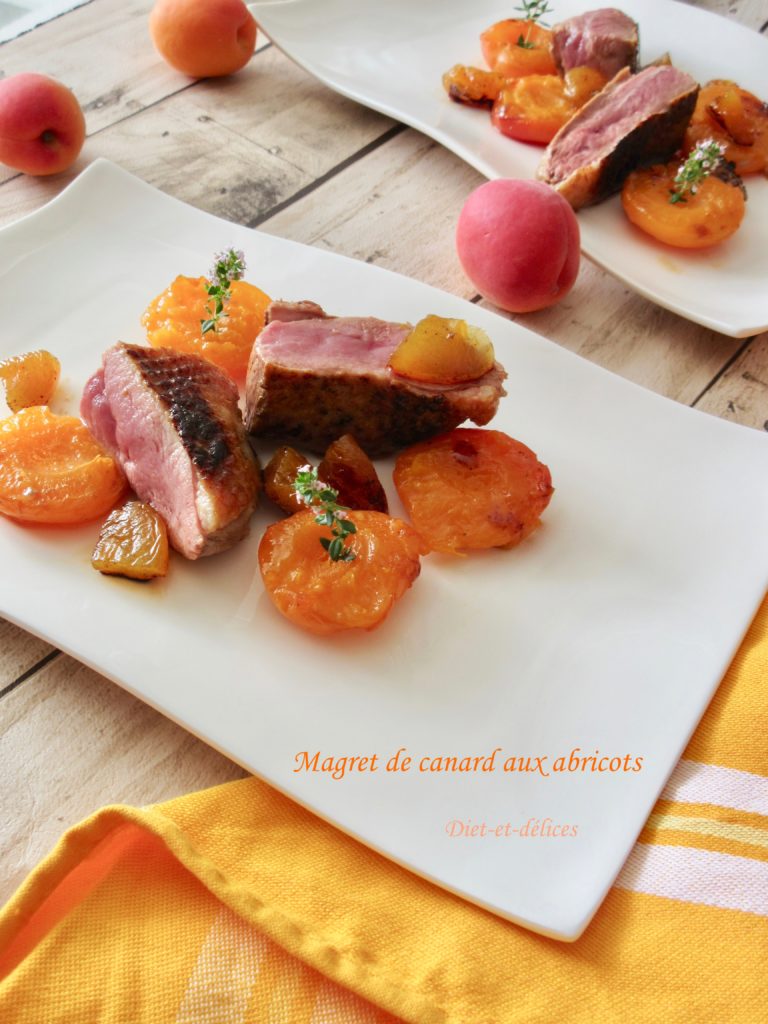 - Couper le magret de canard en quatre puis servir avec les abricots.