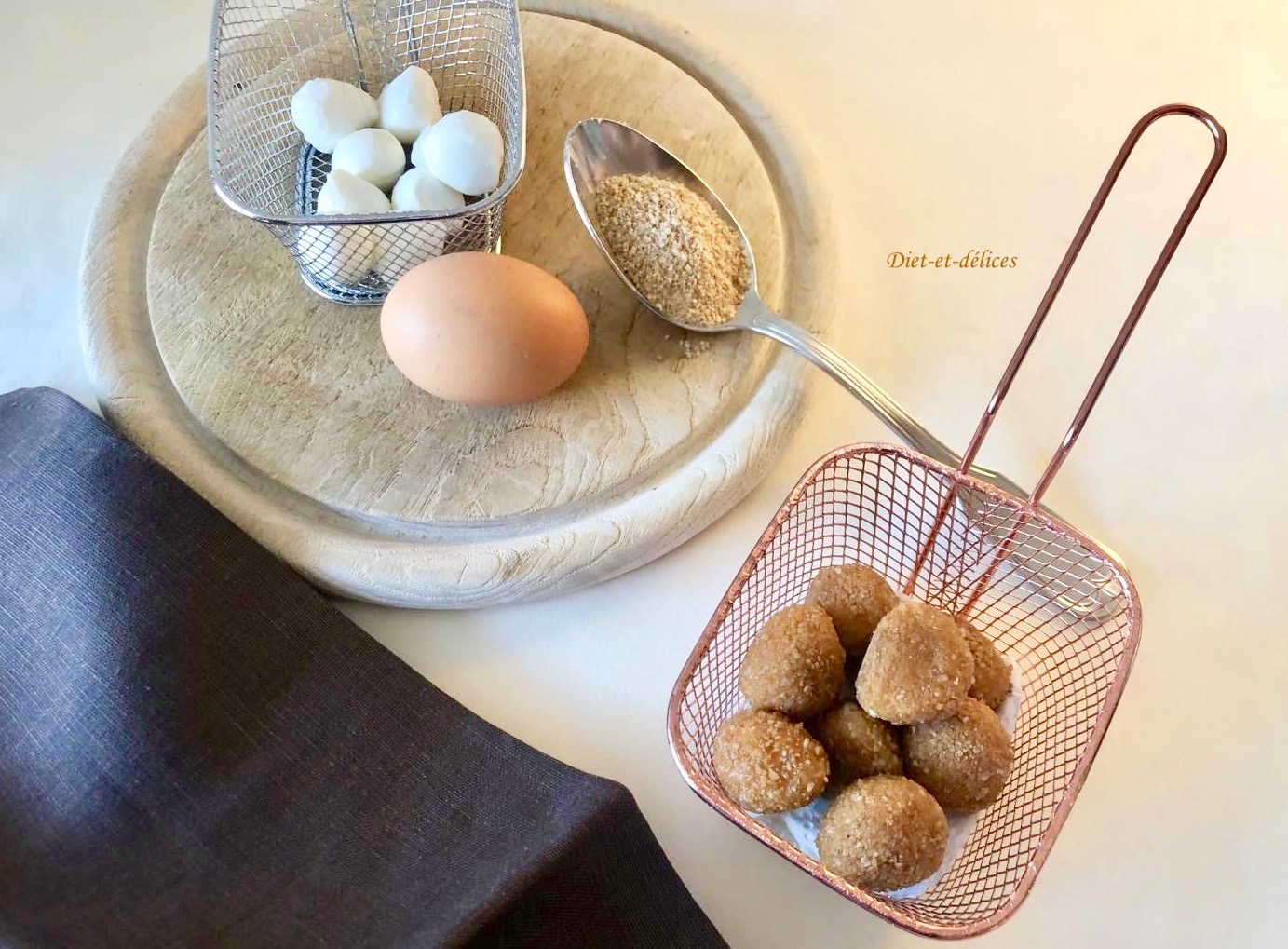 - Lorsque les billes sont panées, les remettre dans l’oeuf puis à nouveau dans la chapelure.