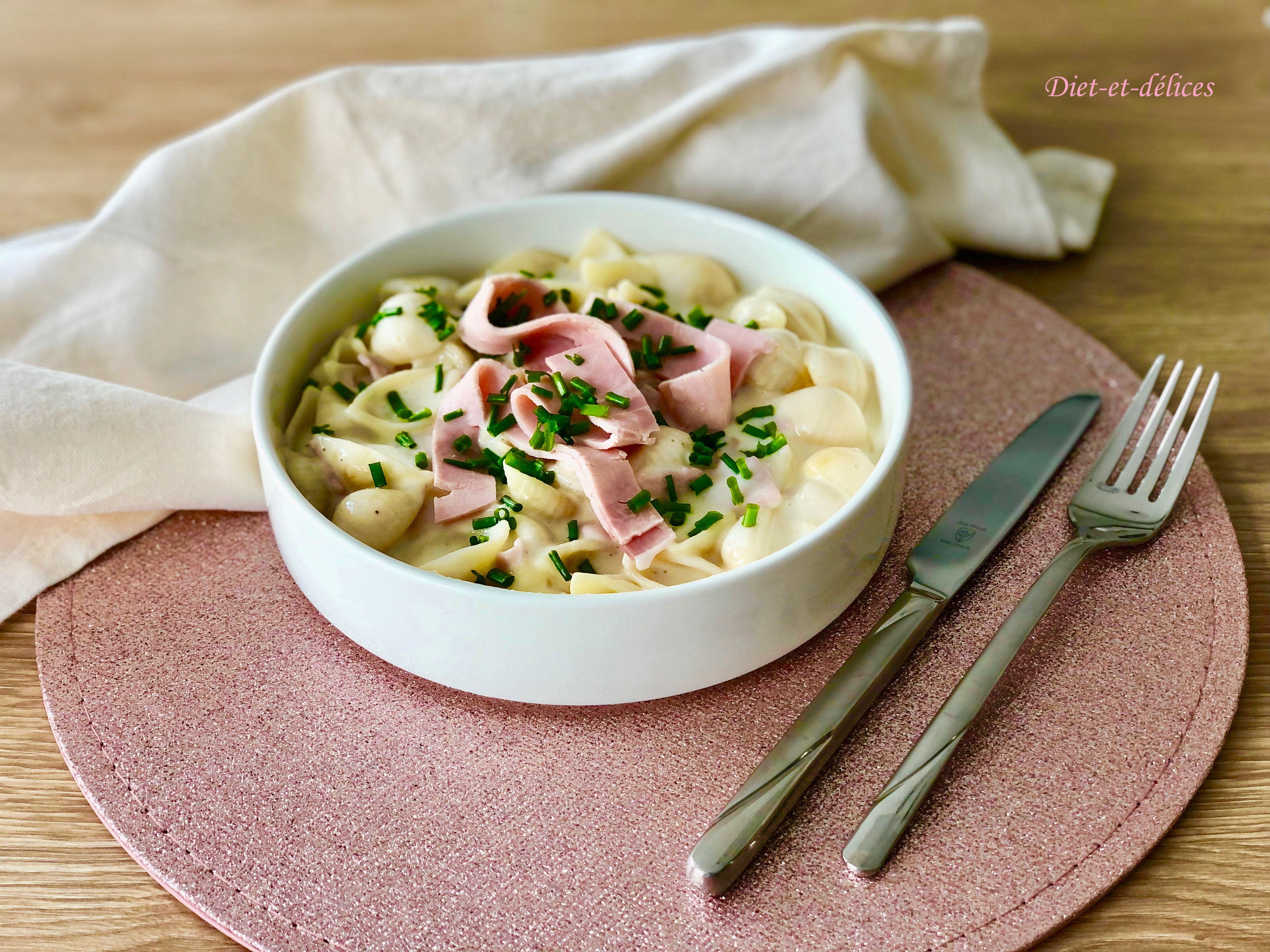 - – gratin de pâtes au jambon blanc et béchamel allégée