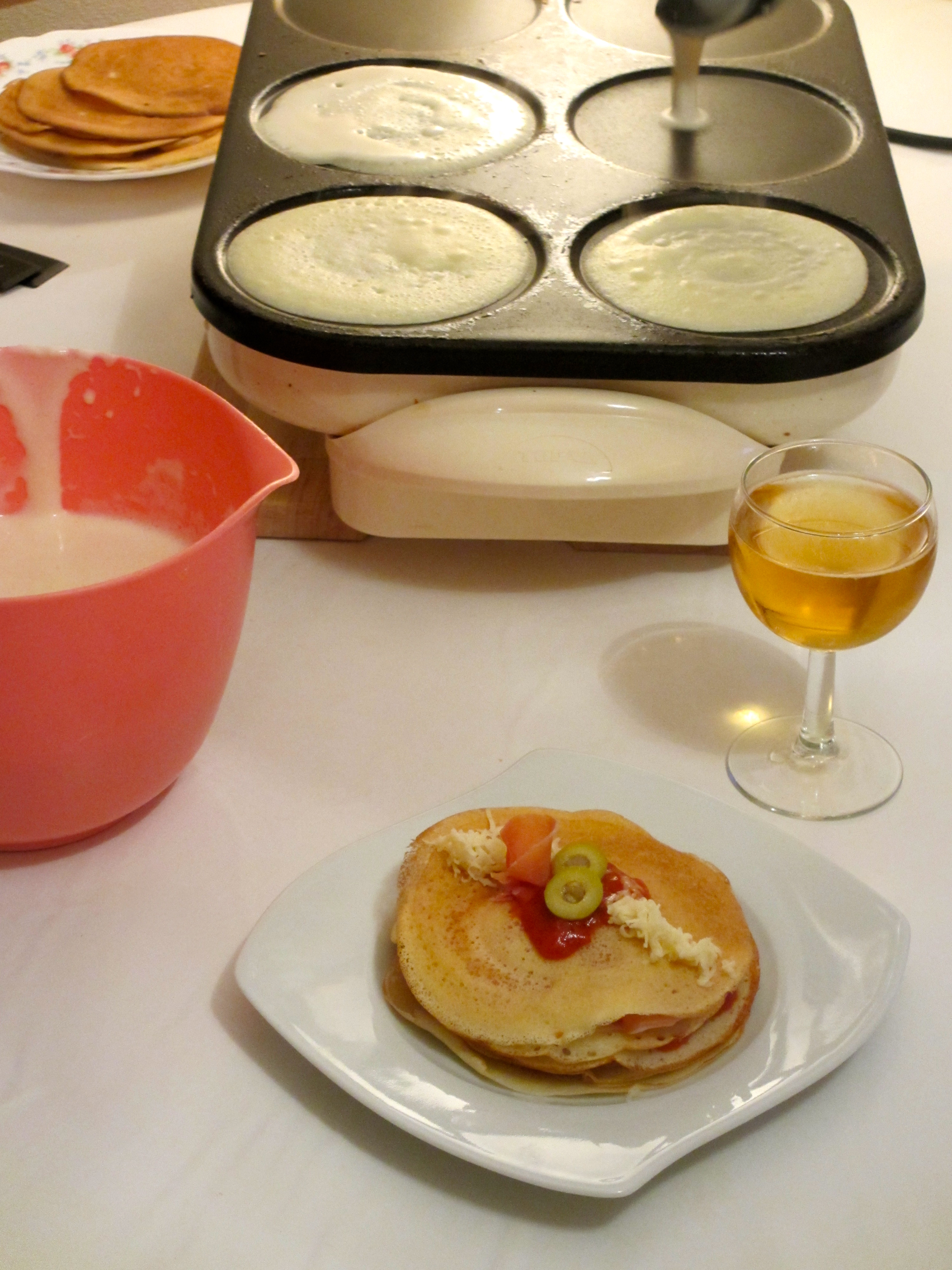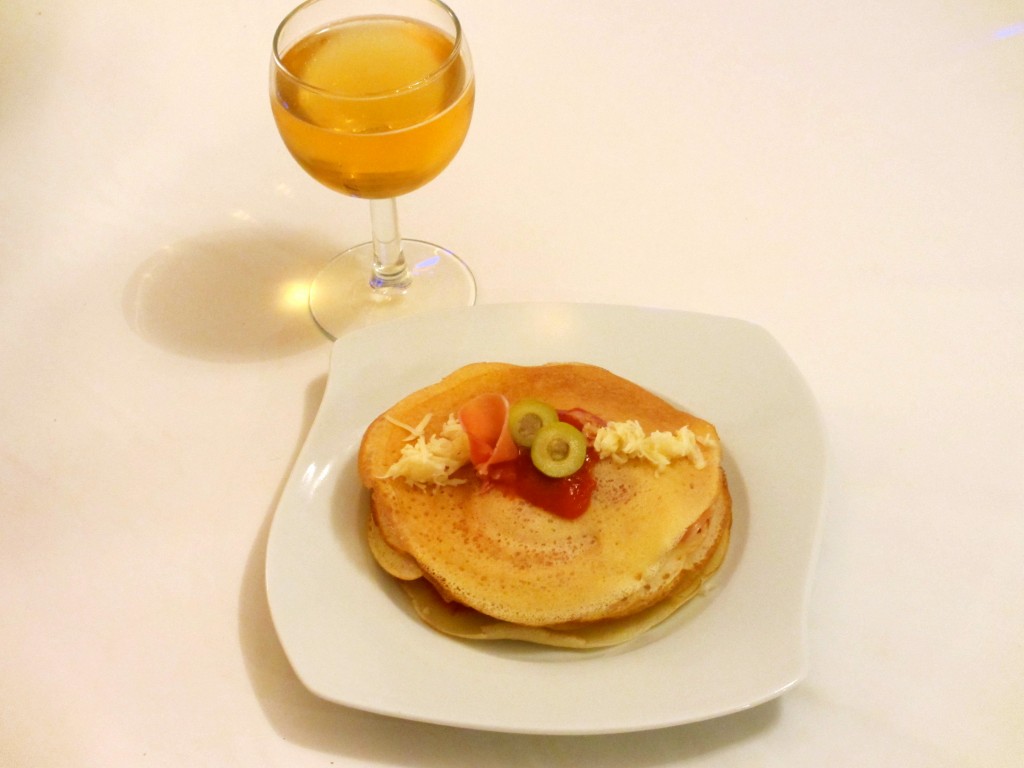 mini crêpes, mini crêpes salées, gâteau de crêpes, crêpes au jambon,jambon, jambon cru, crêpes au jambon et sauce tomate, sauce tomate, olives, crêpes complètes,chandeleur, plat complet