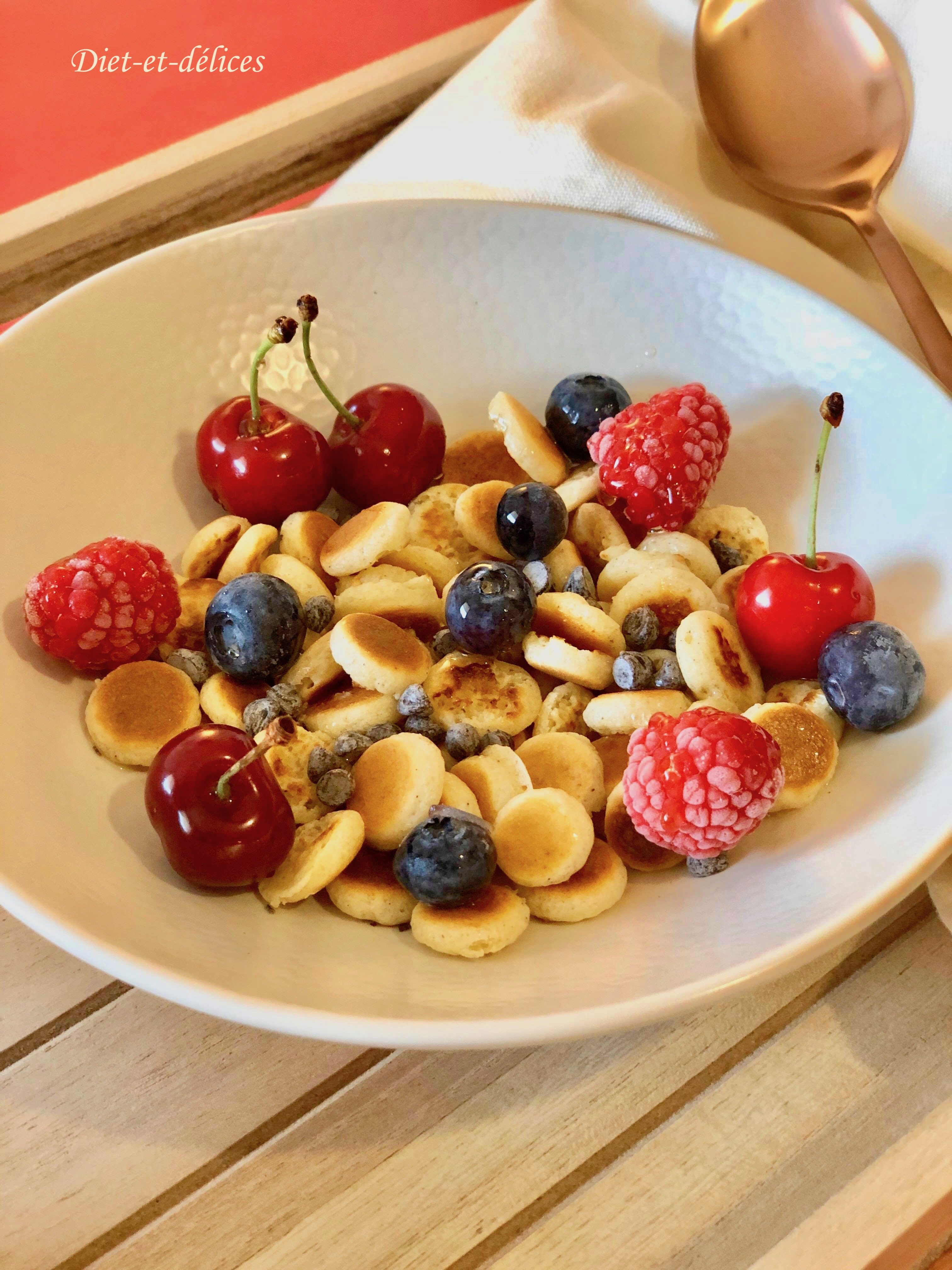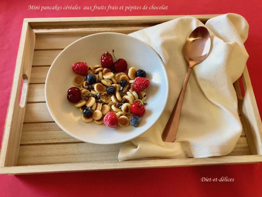 Accueil » Recettes » Desserts » Mini pancakes céréales aux fruits frais et pépites de chocolat
