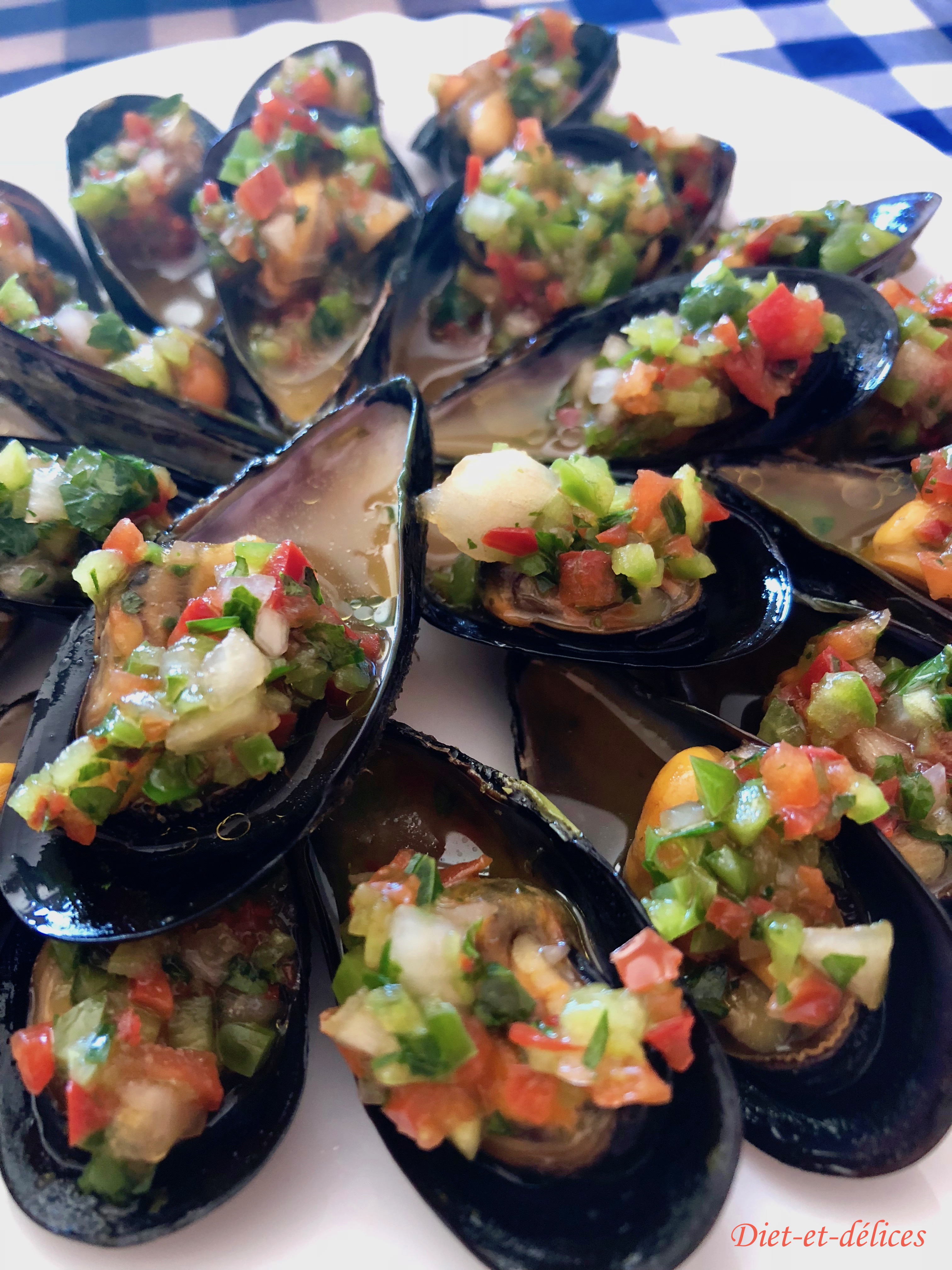 tapas, espagne, moules, coquillages, poivrons, apéro, persil