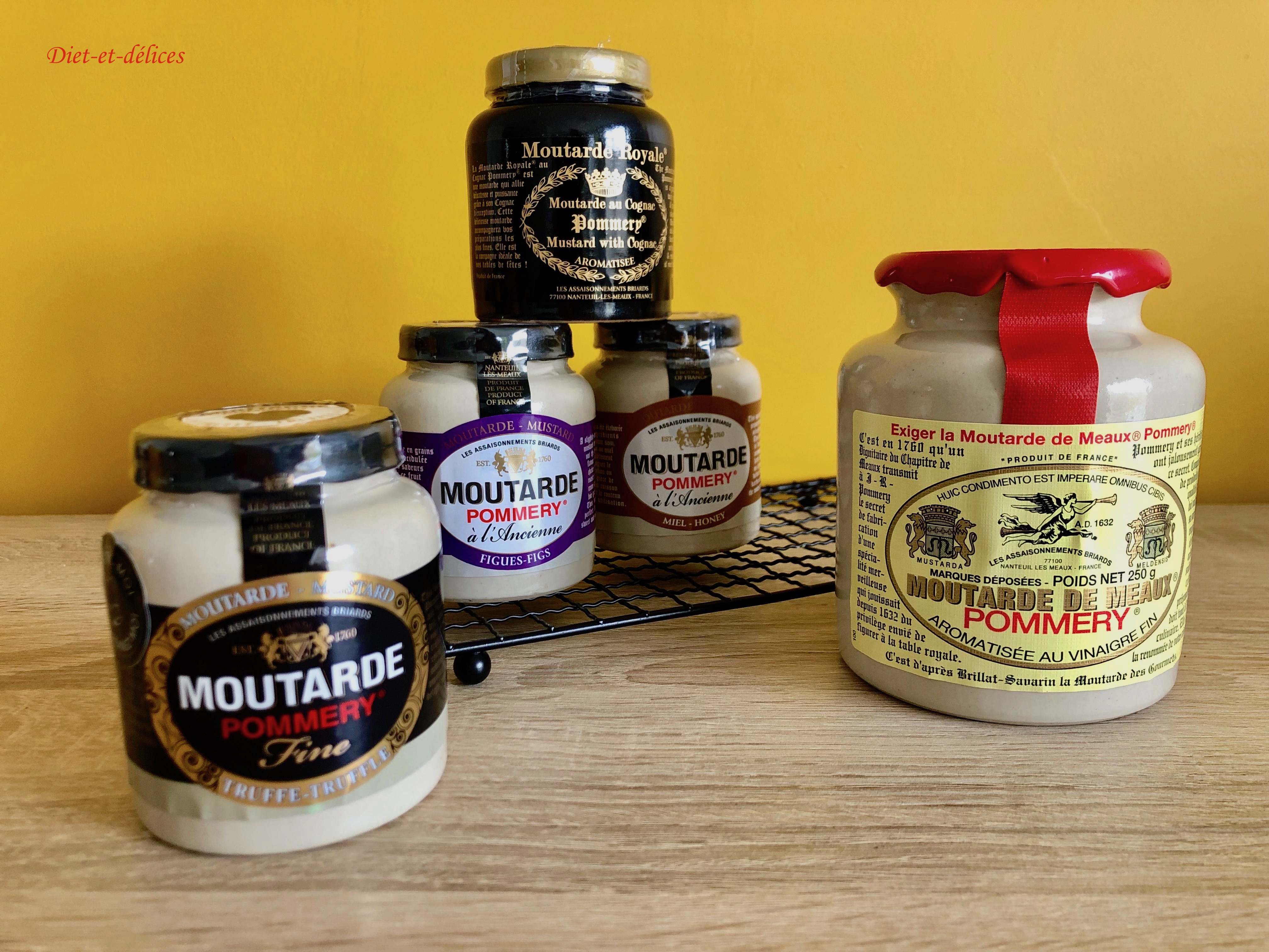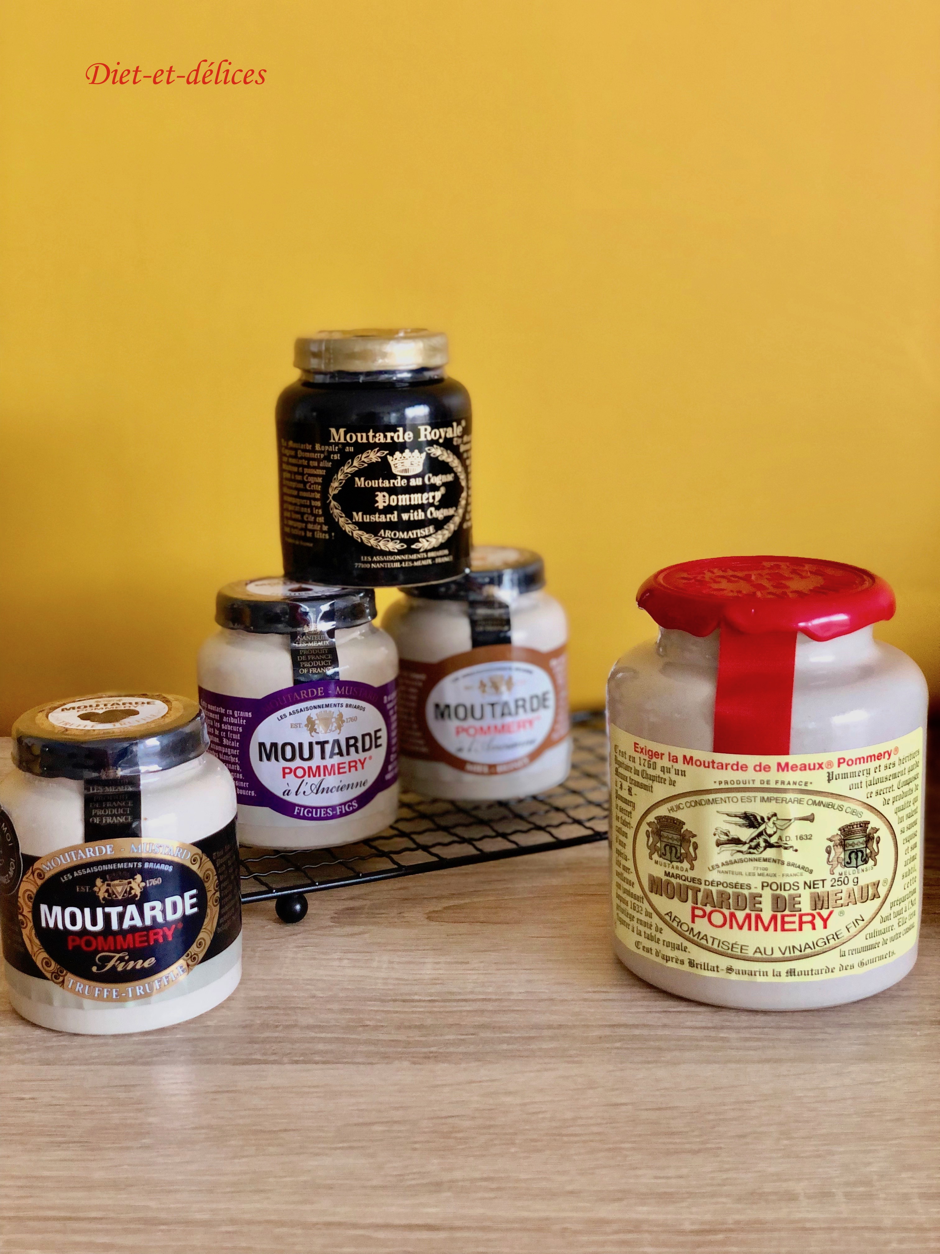 - – Moutarde de Meaux® Pommery® classique mais aussi de nombreuses déclinaisons : au pain d’épices, du lion (moutarde fine, tamisée), au miel, Royale® au Cognac, au poivre Voastsiperifery, citron & basilic, aux fines herbes, au piment d’Espelette, aux figues, des pompiers (au piment), au poivre vert, …