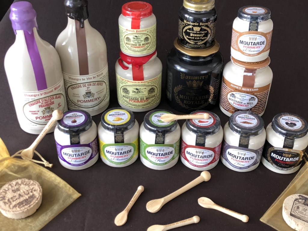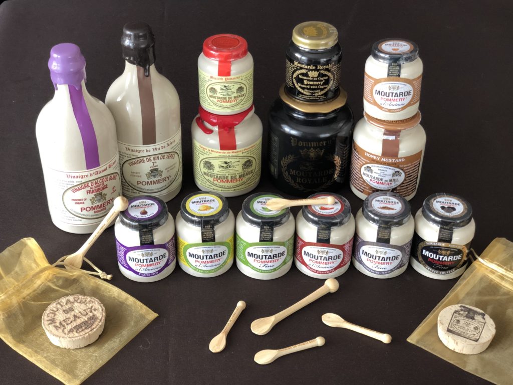 • – Moutarde de Meaux® Pommery® classique mais aussi de nombreuses déclinaisons : au pain d’épices, du lion (moutarde fine, tamisée), au miel, Royale® au Cognac, au poivre Voastsiperifery, citron & basilic, aux fines herbes, au piment d’Espelette, aux figues, des pompiers (au piment), au poivre vert, …