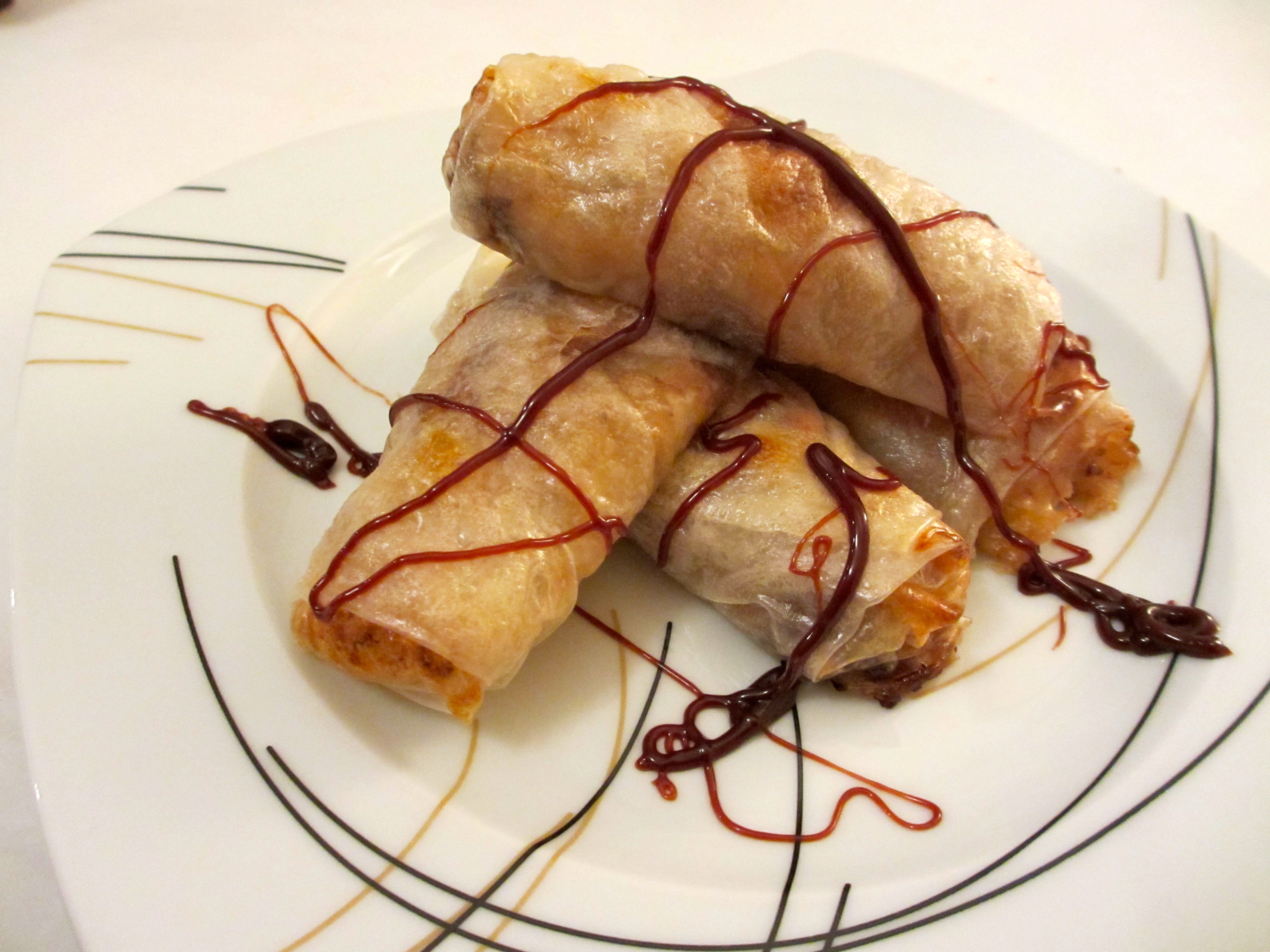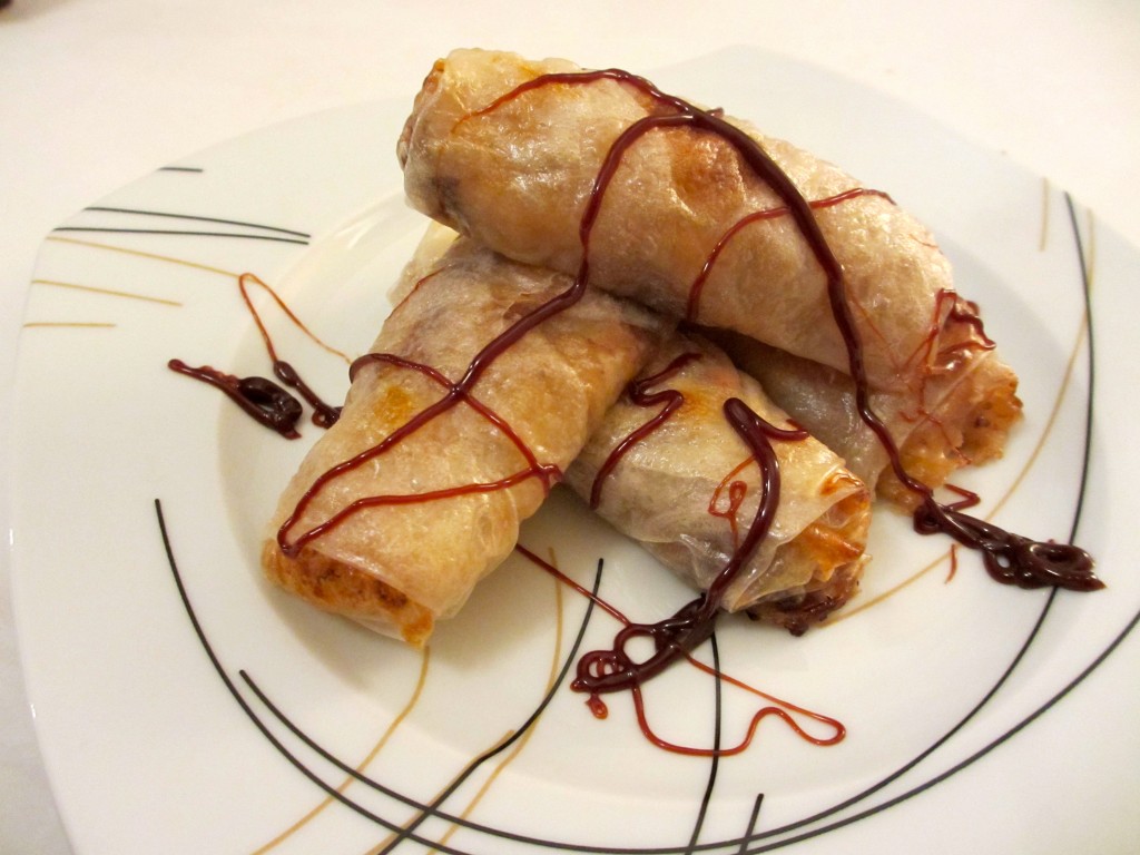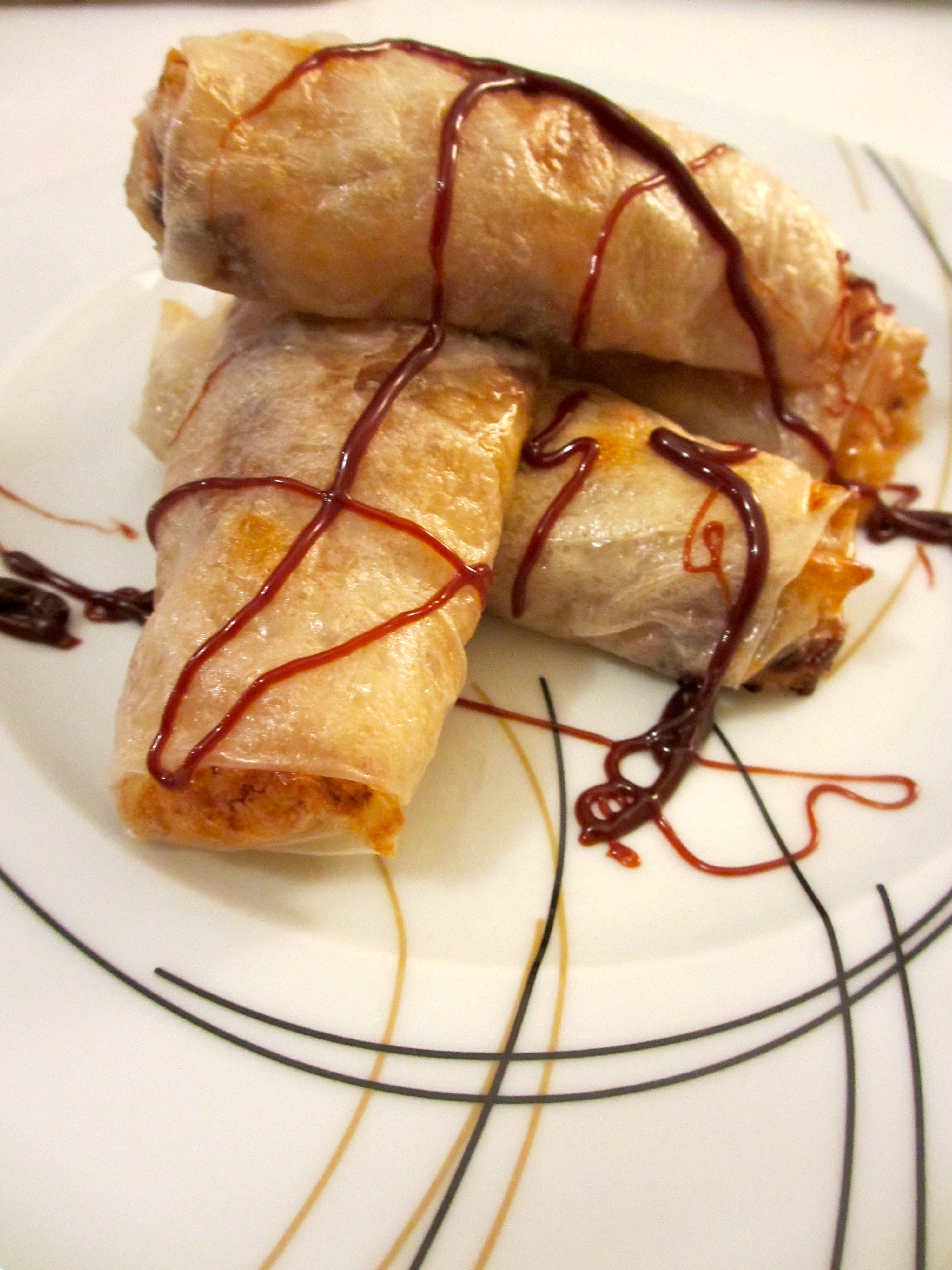 - Disposer une grosse cuillère à soupe de préparation à la banane au bord en haut de la galette. Rabattre les deux côtés, puis rouler les galettes en serrant bien.