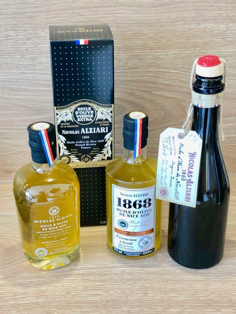 - de l’huile d’olive cru d’origine : AOP Nice, Aix en Provence, Haute Provence, Vallée des Baux de Provence, Nîmes, Nyons, Corse