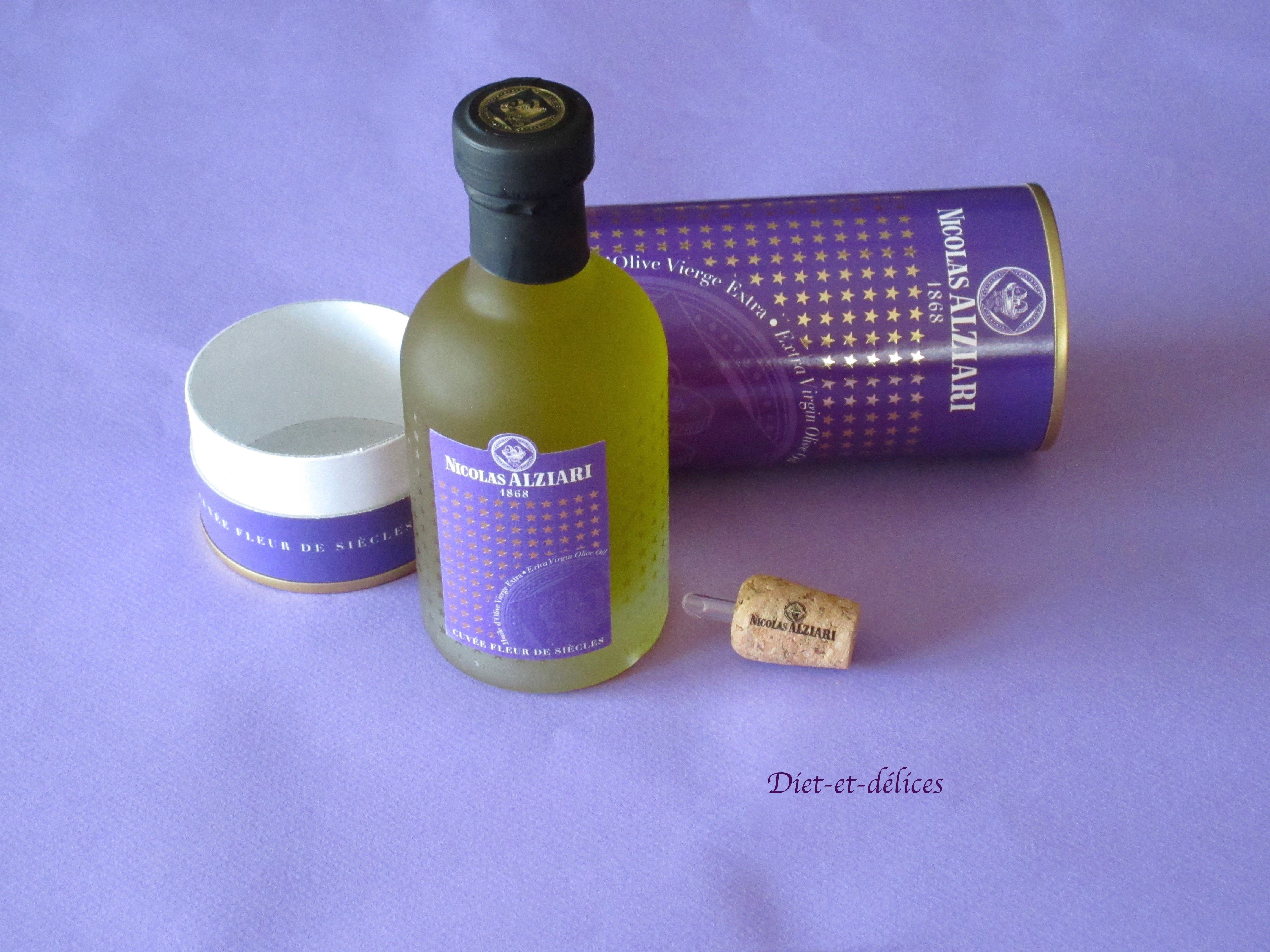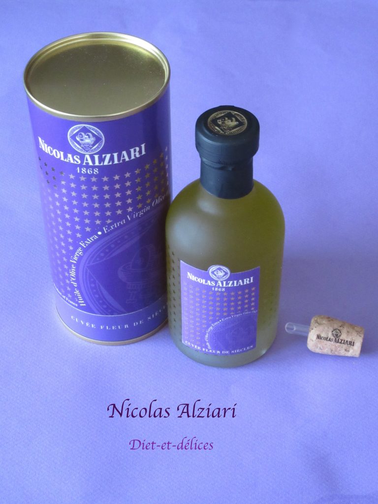 Je remercie vivement mon partenaire Nicolas Alziari : j’ai eu le plaisir de recevoir une cuvée fleur de siècles. Cette cuvée d’exception est obtenue sans aucune pression, avec des olives issues d’oliviers plusieurs fois centenaires. A l’intérieur de son joli écrin de couleur pourpre, vous trouverez une huile aux arômes délicats de pignon, d’amande et d’artichaut, à la couleur dorée. Cette huile s’utilise au moment du dressage, sur un poisson ou une viande. Il ne faut pas la chauffer pour en préserver tous ses arômes.