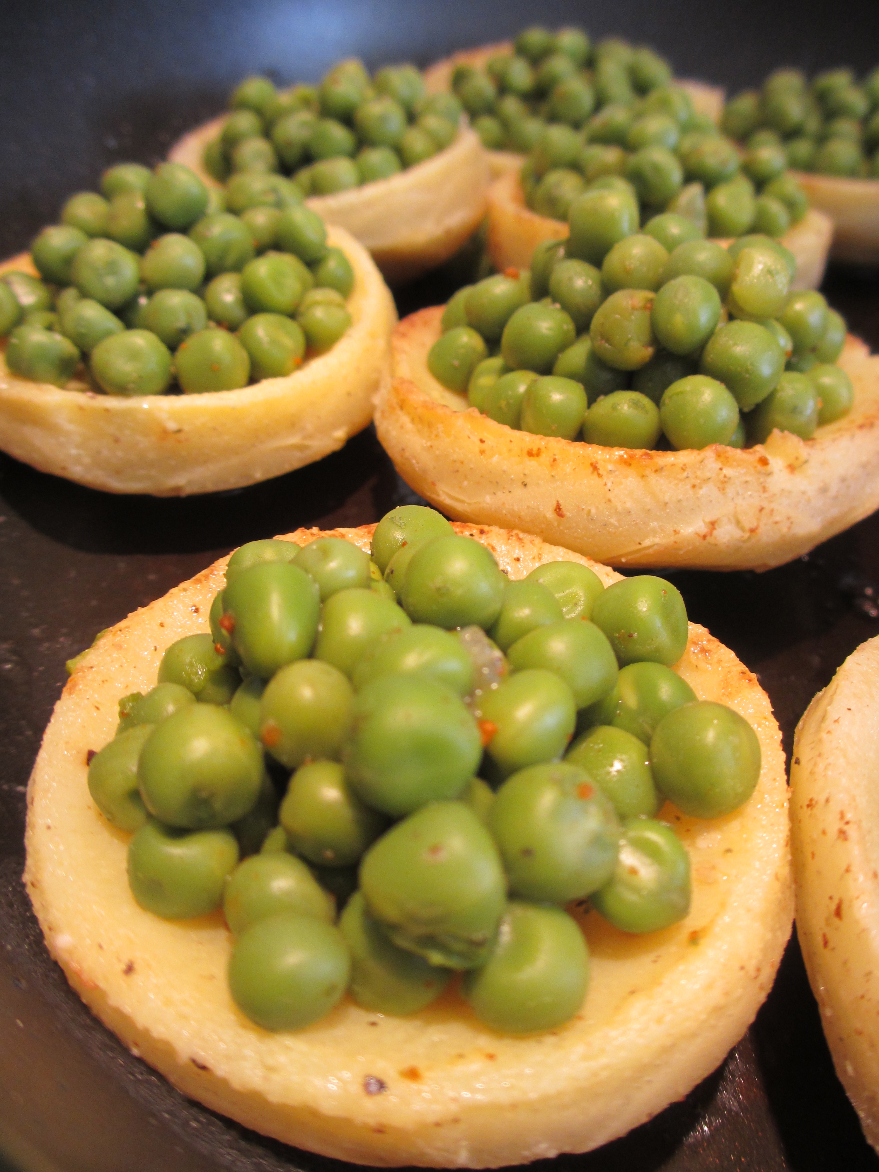 • Garnir les fonds d’artichaut avec les petits pois de manière à former des petits nids.