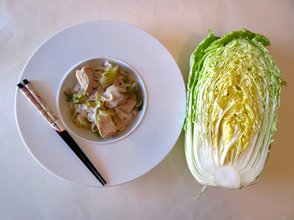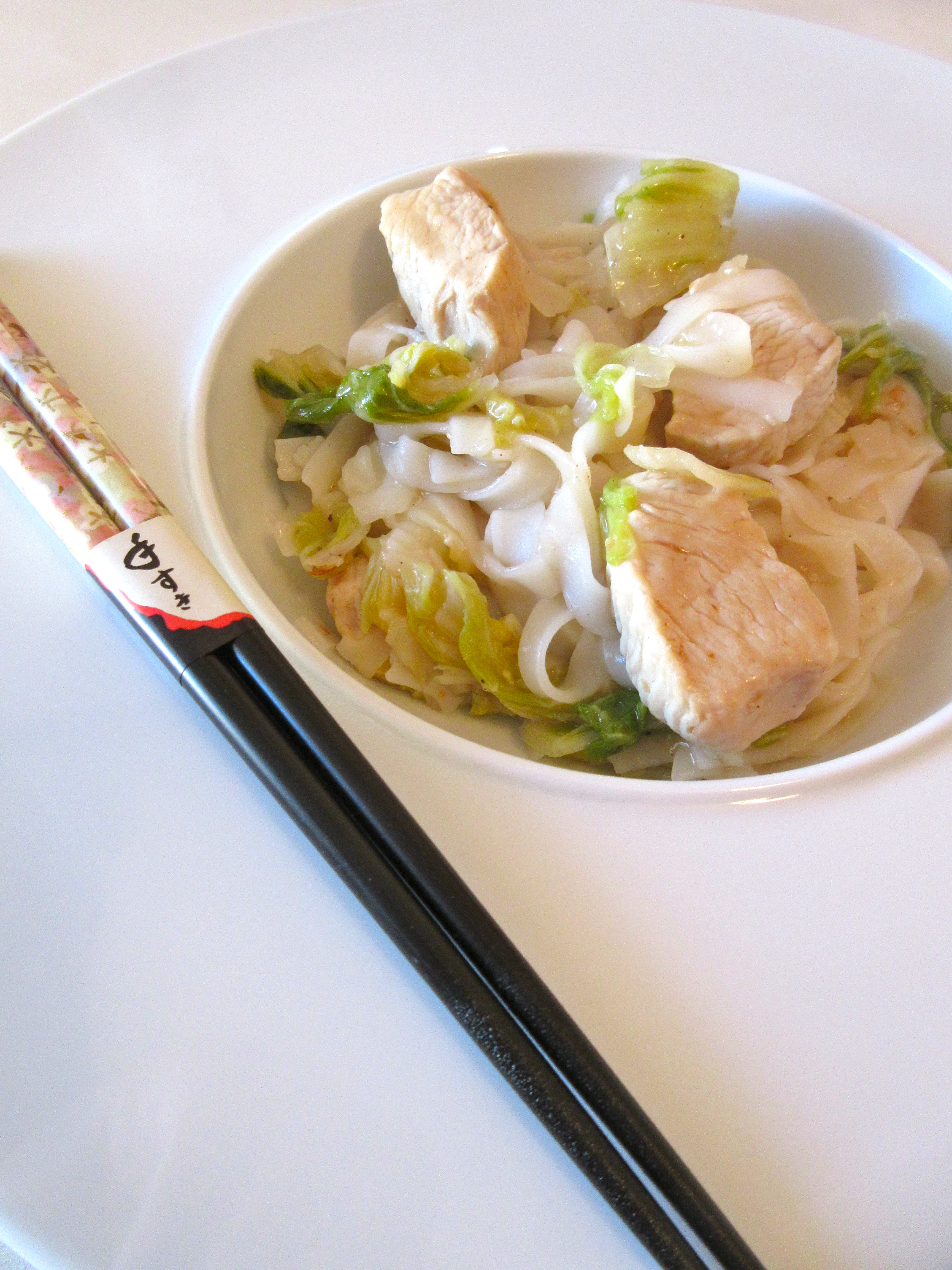 cuisine asiatique, cuisine du monde, nouilles de riz, plat complet, dinde au chorizo,nouilles de riz au chou chinois, chou chinois, sauce aigre douce, filet de dinde, chou chinois à la dinde, sans gluten, nouilles au chou chinois