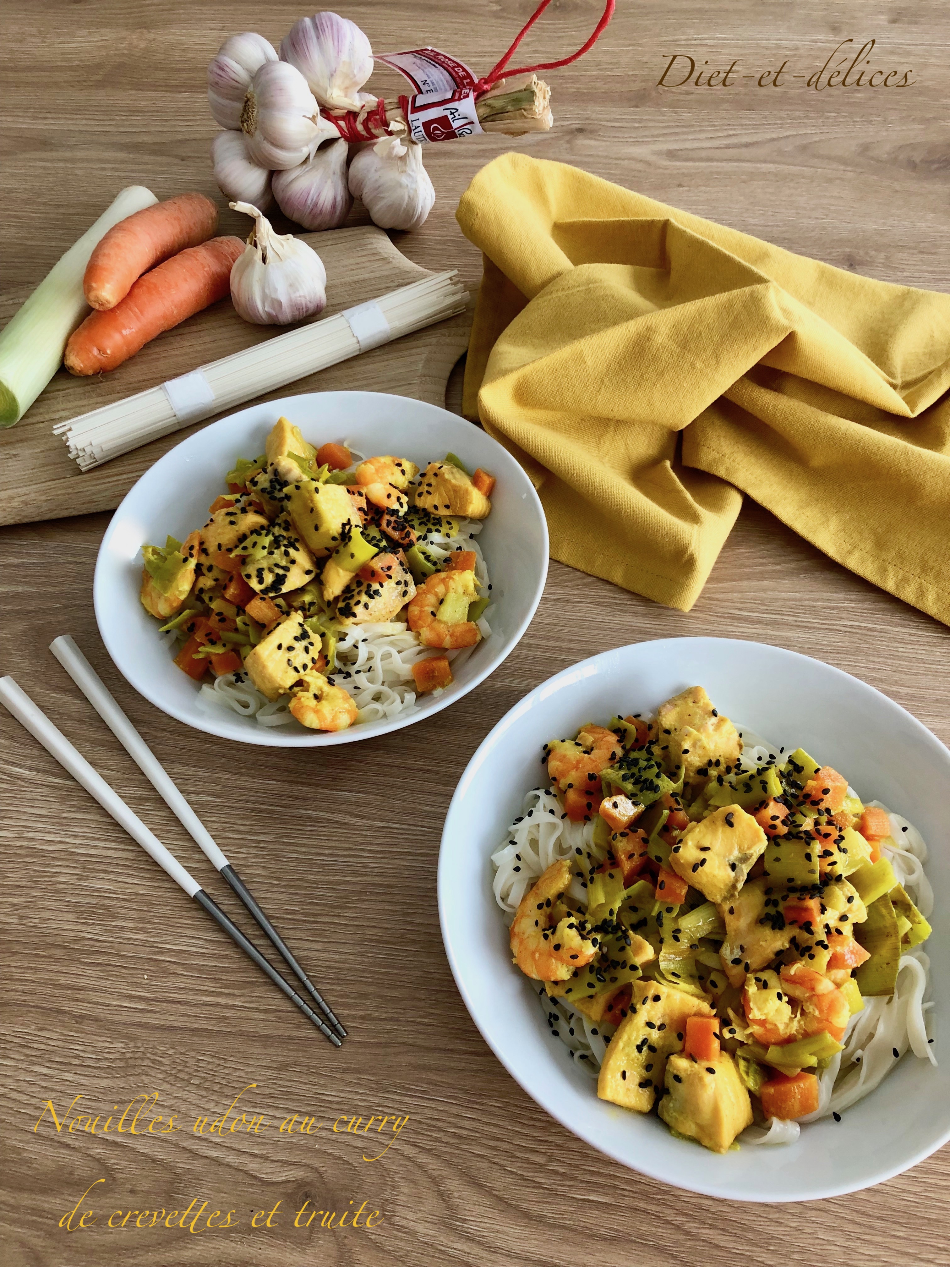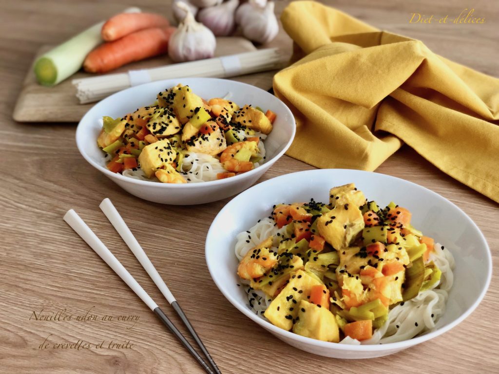 Accueil » Recettes » Féculents » Nouilles udon au curry de crevettes et truite