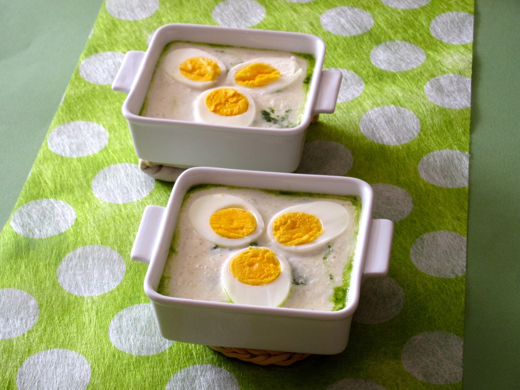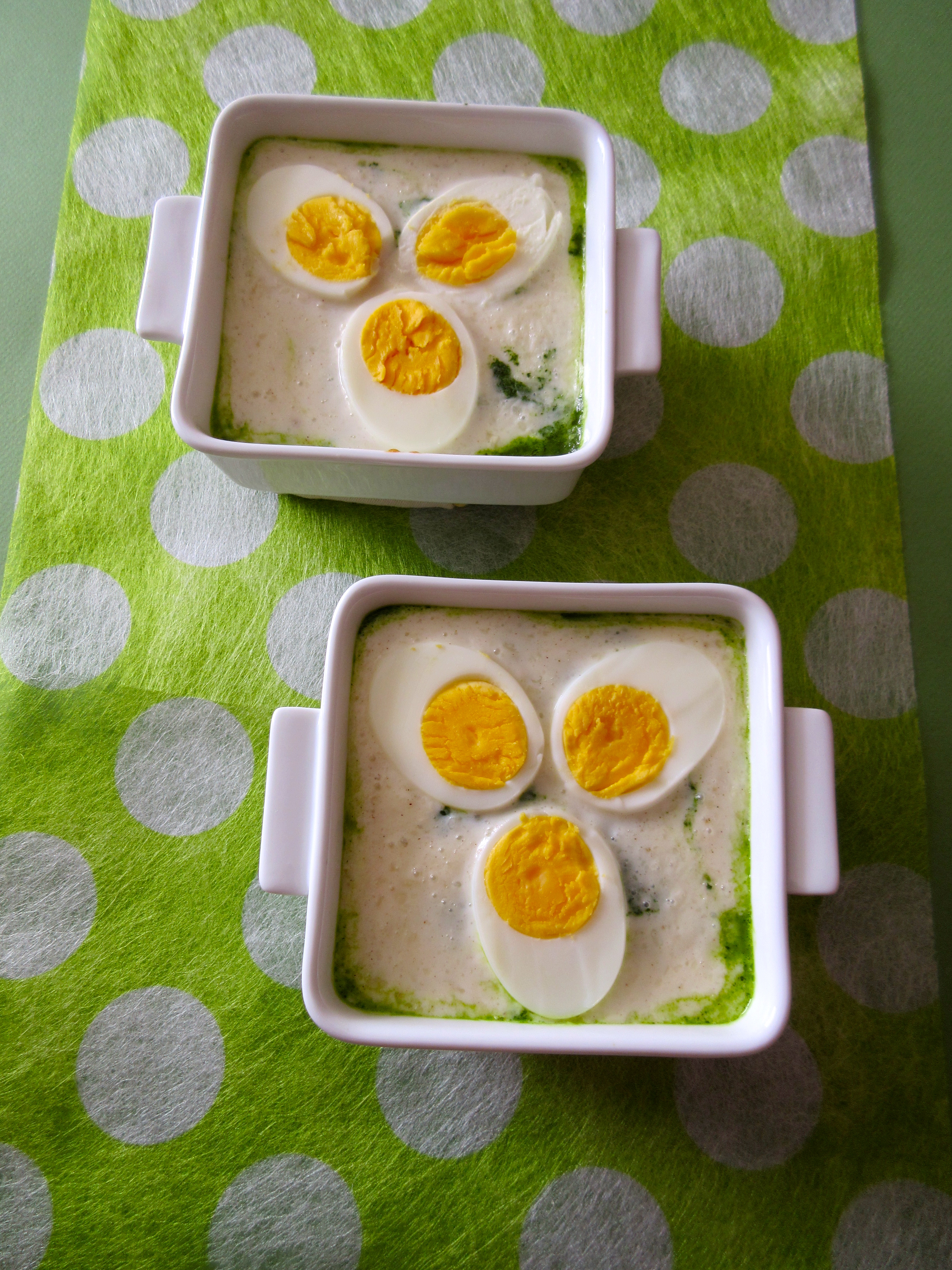 oeufs, oeufs durs,oeufs durs à la florentine, feuilles de blettes,blettes, bettes, feuilles de bette, poirée, jotte,béchamel, béchamel allégée, oeufs à la béchamel
