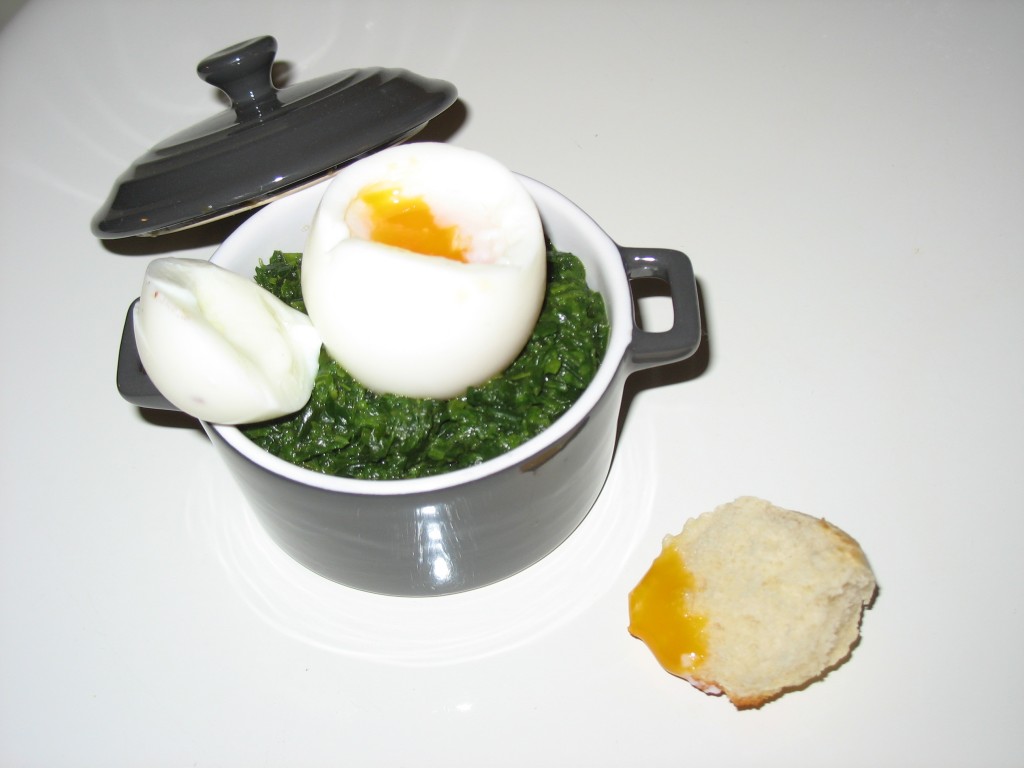 - Déposer l’oeuf mollet sur un lit d’épinards.
