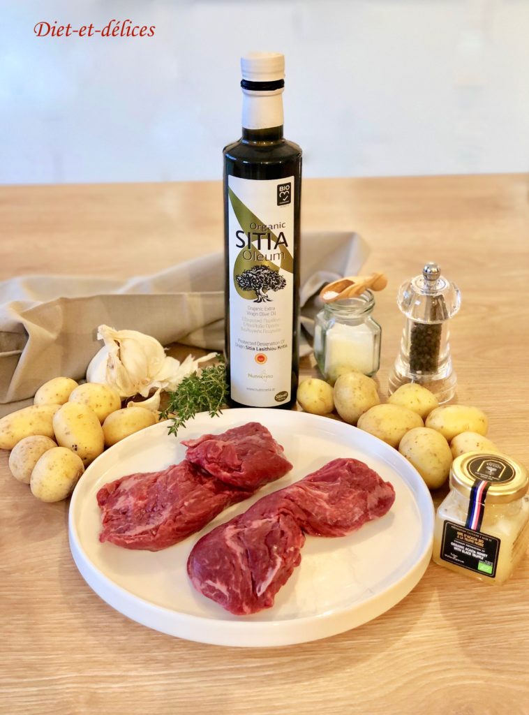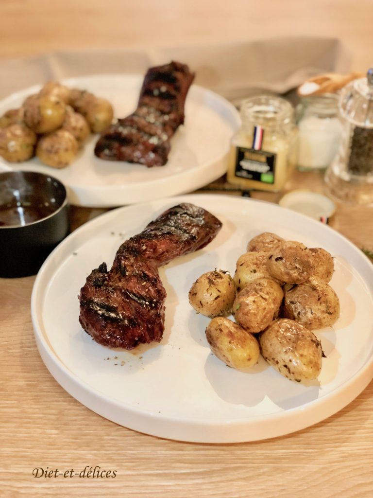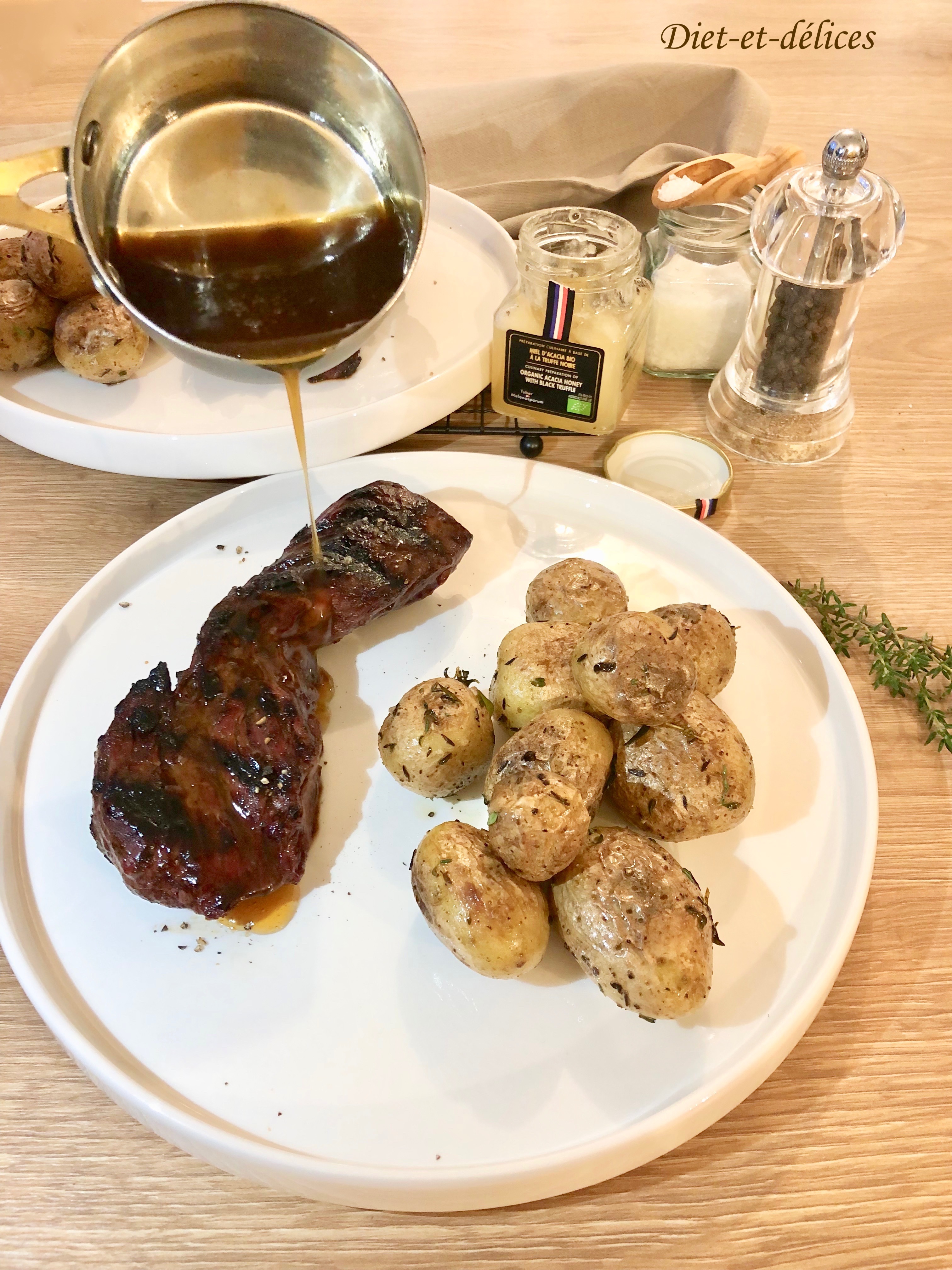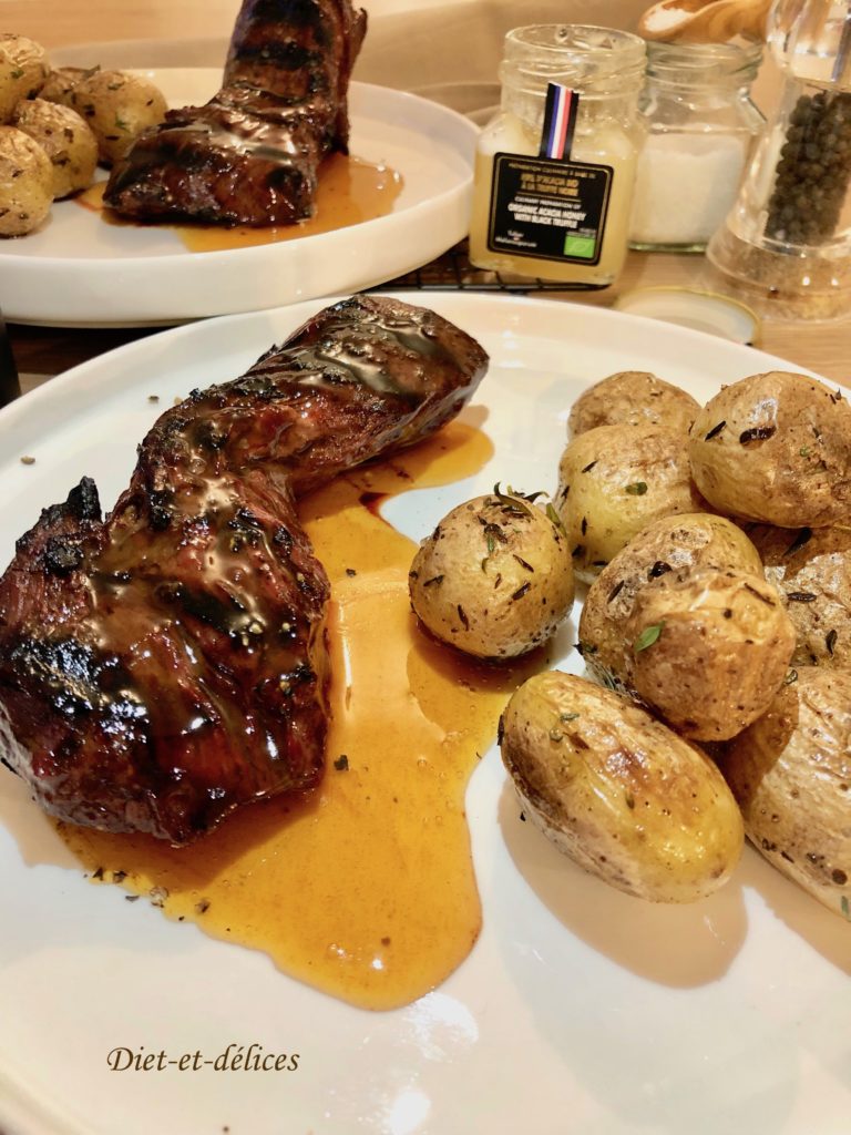 onglet, onglet de boeuf, miel, pommes de terre grenailles, sauce au miel, miel à la truffe