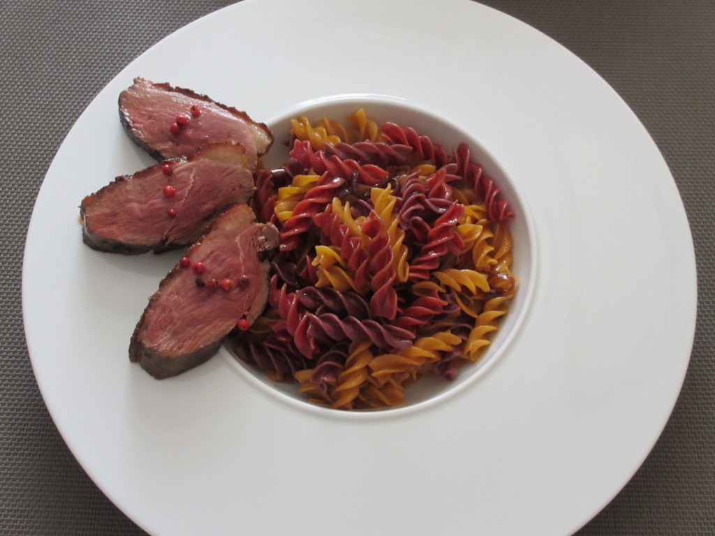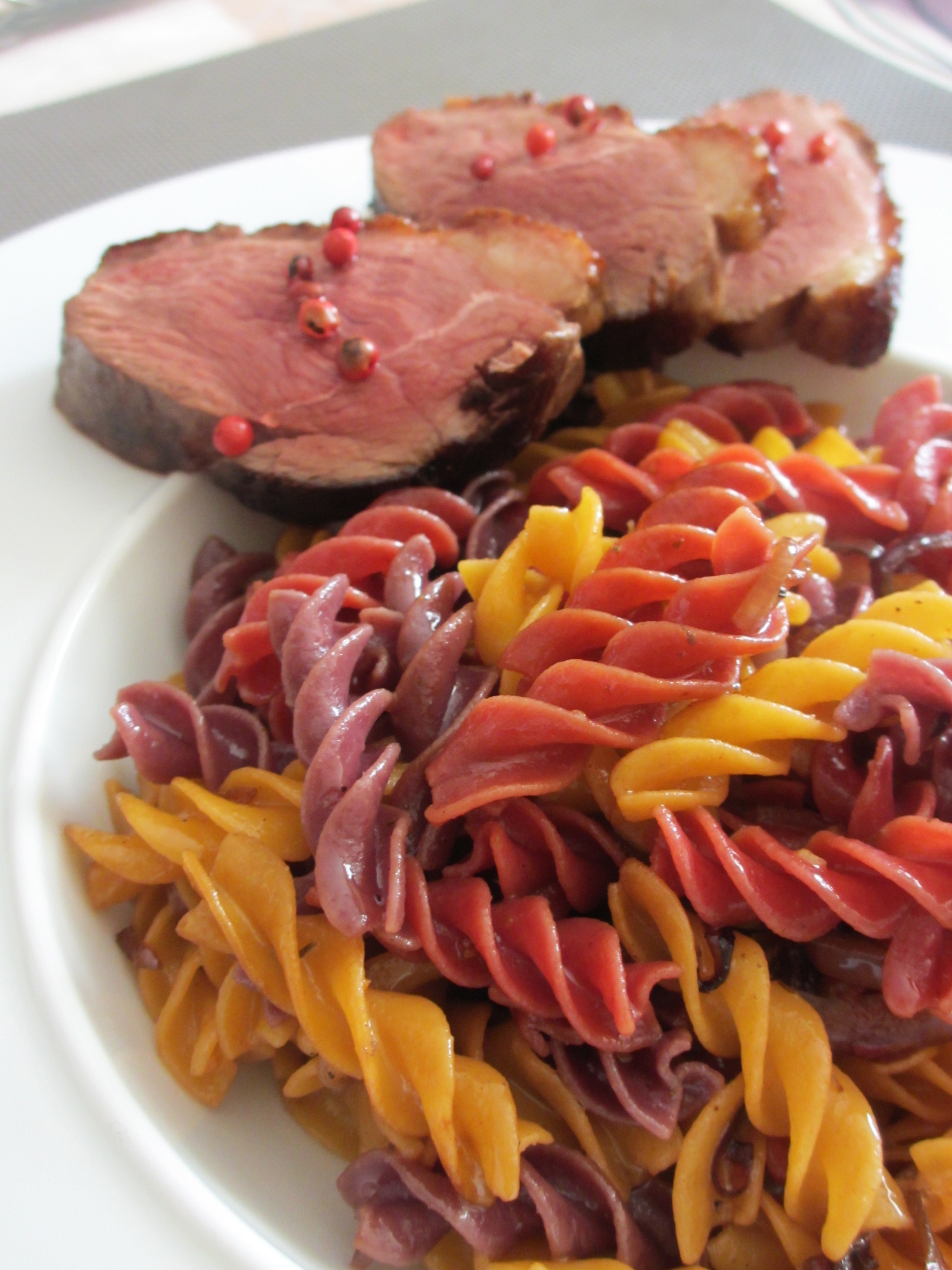pat’atouille, pâtes, panais, potiron, betterave, chou magret, canard, oignon, cajun