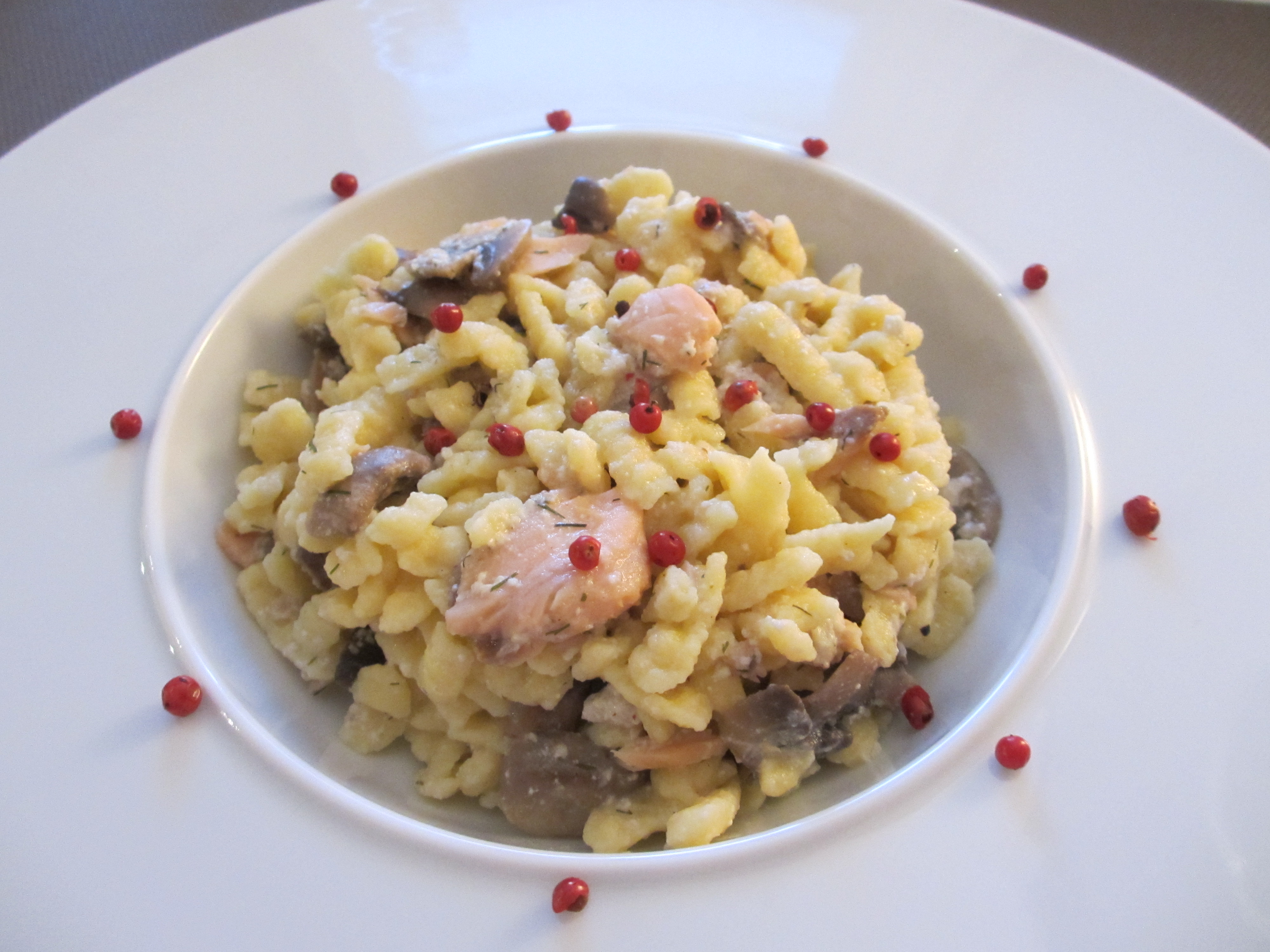 Accueil » Recettes » Pasta » Pâtes alsaciennes saumon-champignons