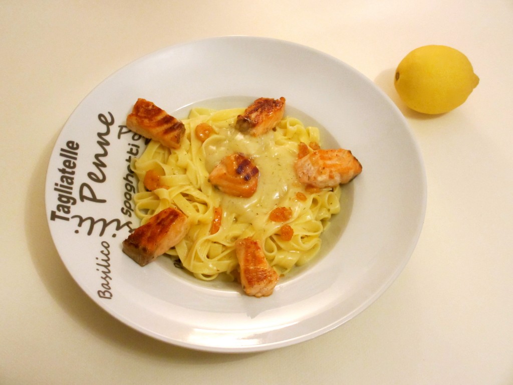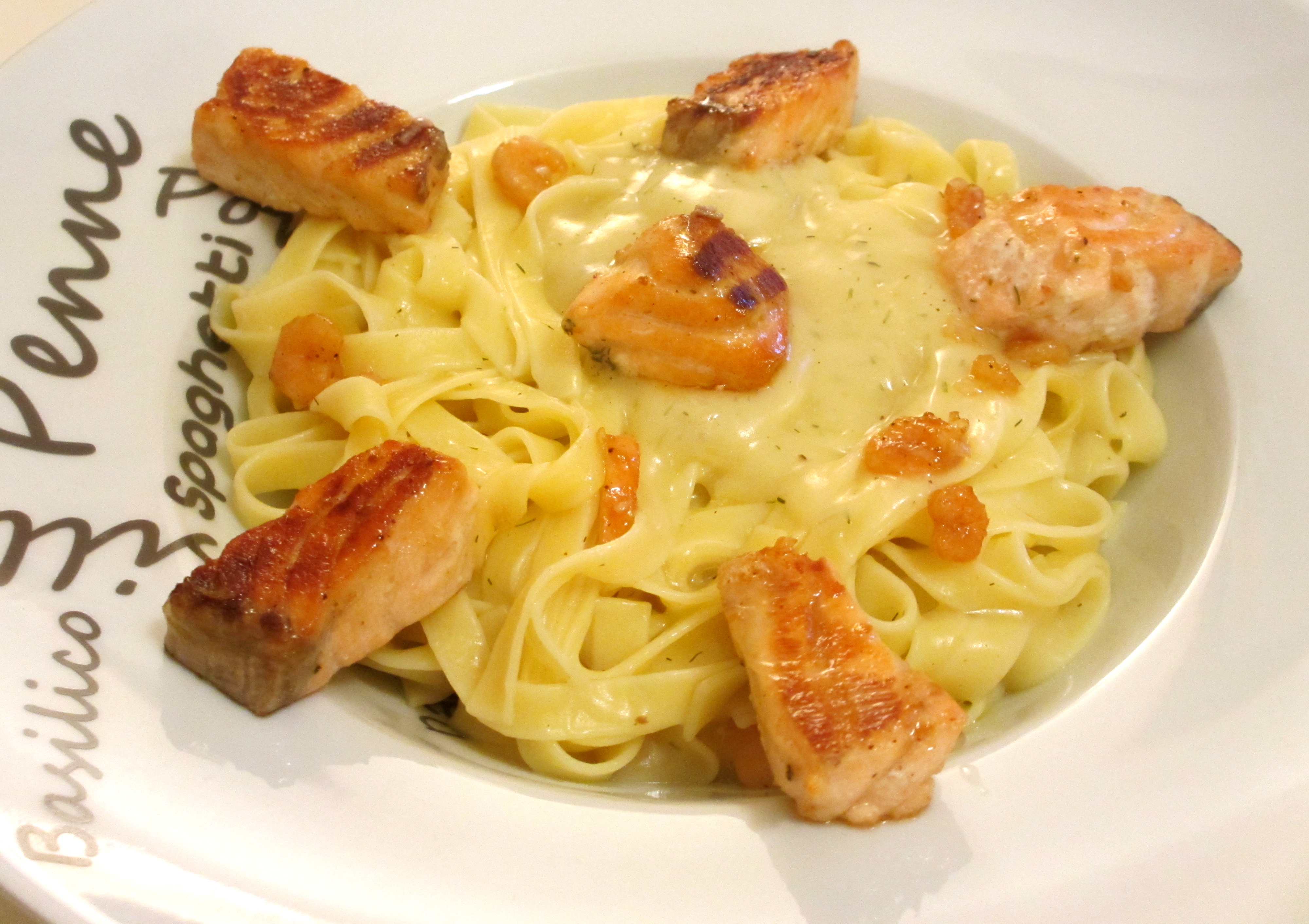 pâtes, tagliatelles,saumon, pâtes au saumon,tagliatelles au saumon, crevettes, aneth, sauce, sauce blanche,saumon frais, fruits de mer