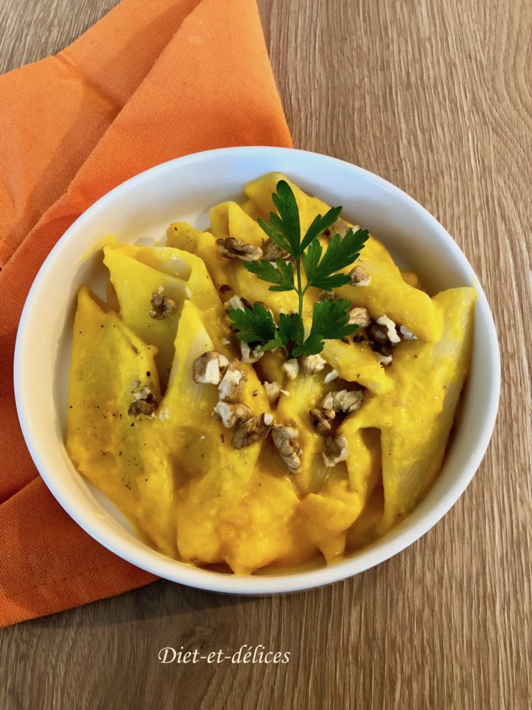 pâtes, potiron, noix, pâtes au potiron, sauce au potiron, végétarien