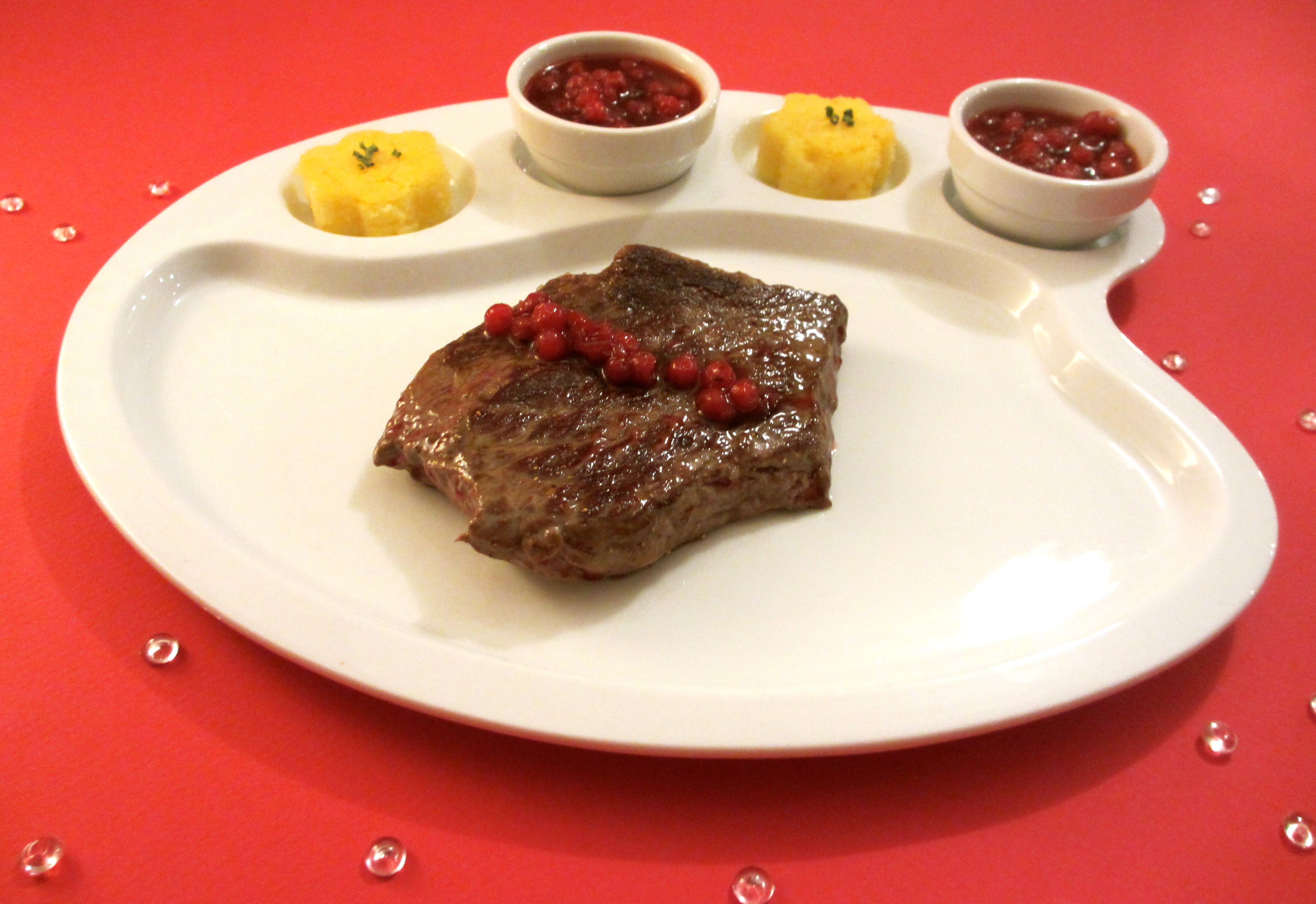 • Dresser les pavés de boeuf avec la sauce aux airelles.